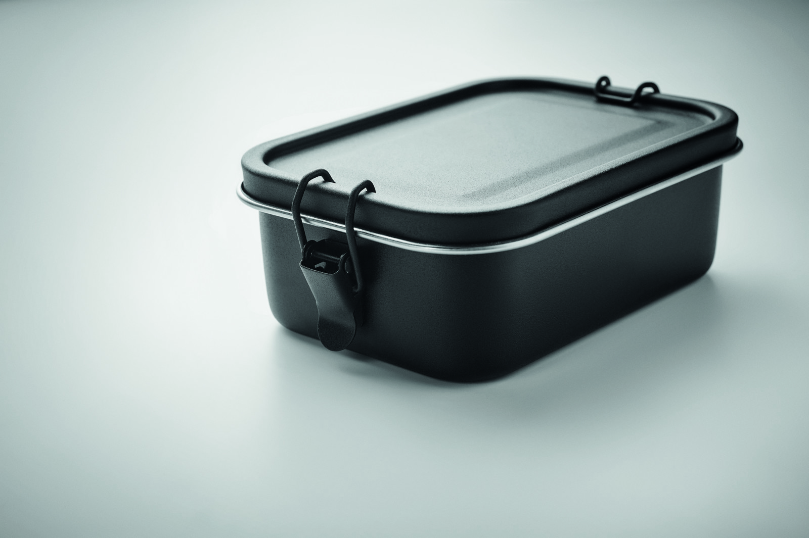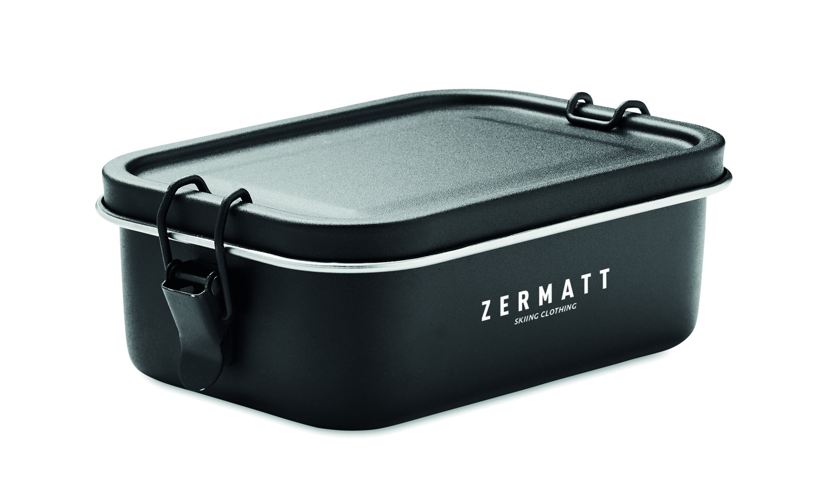 Stainless steel lunch box with strong and secure side buckles. Capacity 750 ml.