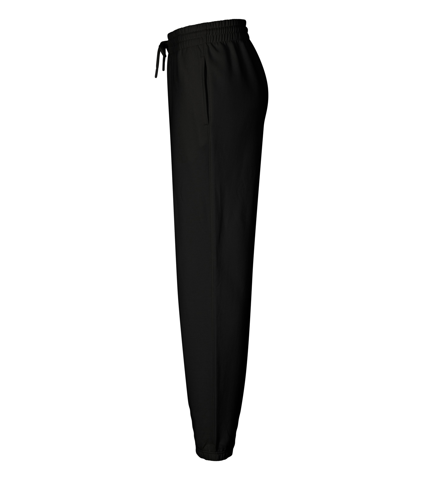 Label free - ready for rebranding, looser leg cut, neutral size label, elastic waistband, adjustable by drawcord, side-seam welt pockets, bottom hem with elastic band, brushed inner side