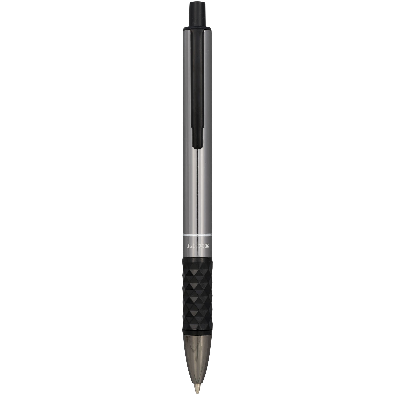 Exclusive A5 sized design notebook with Thermo PU cover, black ribbon page marker, magnetic closure and 80 sheets of 80gsm cream lined paper. Paired with the Tactical click action ballpoint pen. Both items packed in a ''LUXE'' gift box. Size notebook: 13.5 x 20.5 cm. Length pen: 14 cm. Diameter pen: 1.05cm.