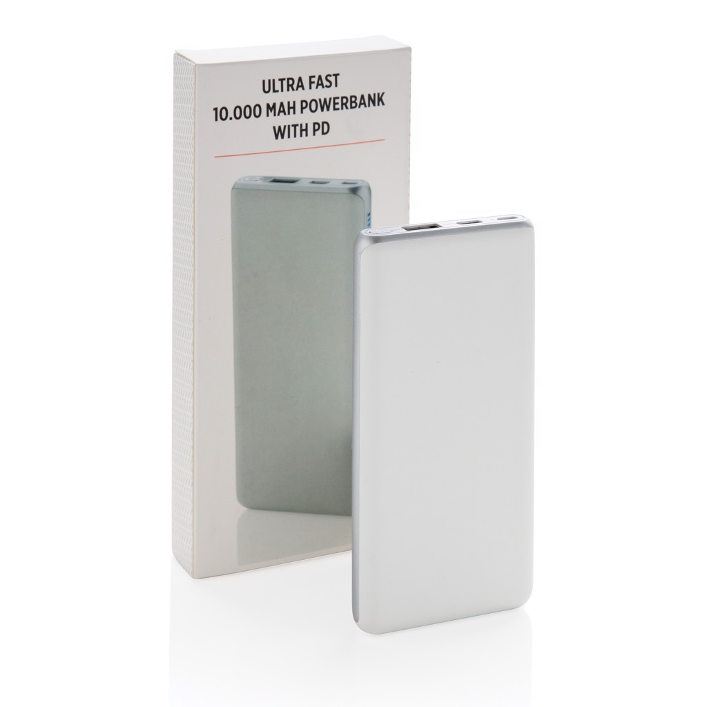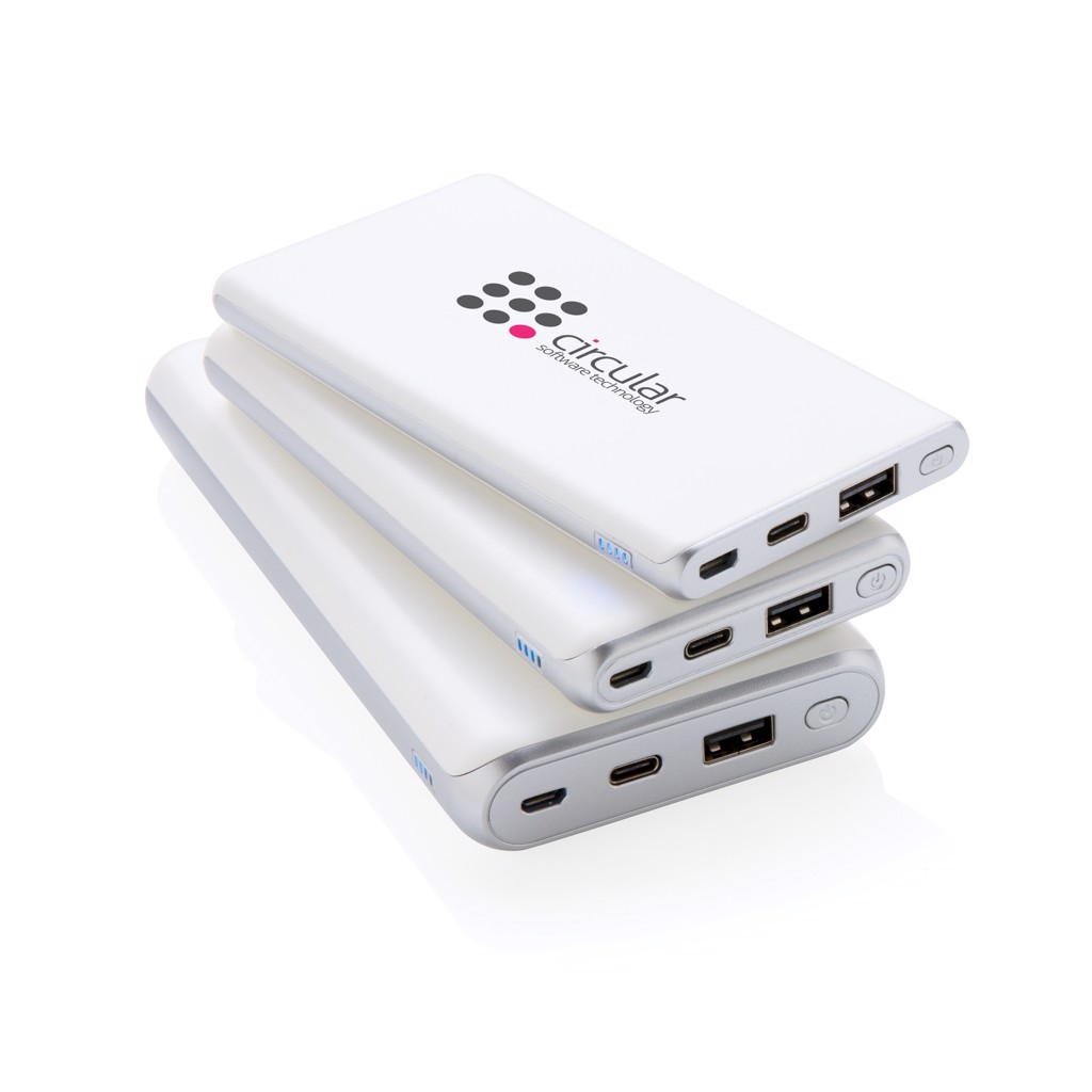 State of the art 10.000 mAh powerbank that offers the fastest charging experience available. Made out of ABS. With type C port that supports power delivery for iPhone and Macbook(max 18W) and regular USB port. Micro USB Input: 5V/2A. USB output: 5V/3A 9V/2A 12V/1.5A. Type C input: 5V/2A 9V/2A. Type C output: 5V/3A 9V/2A 12V/1.5A.
