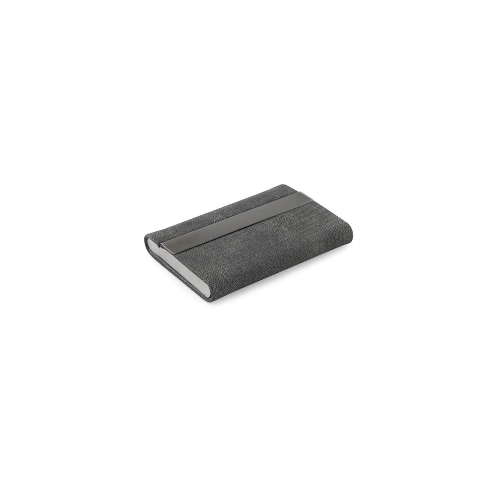 Set consisting of 1 card holder and 1 key holder, both made of metal and polyester (30% recycled). The card holder can hold up to 7 cards. Supplied in a premium kraft paper gift box. Ring: ø 32 mm | Product: 87 x 25 x 7 mm | Total: 114 x 32 x 7 mm | Card holder: 95 x 65 x 13 mm | Case: 125 x 135 x 17 mm