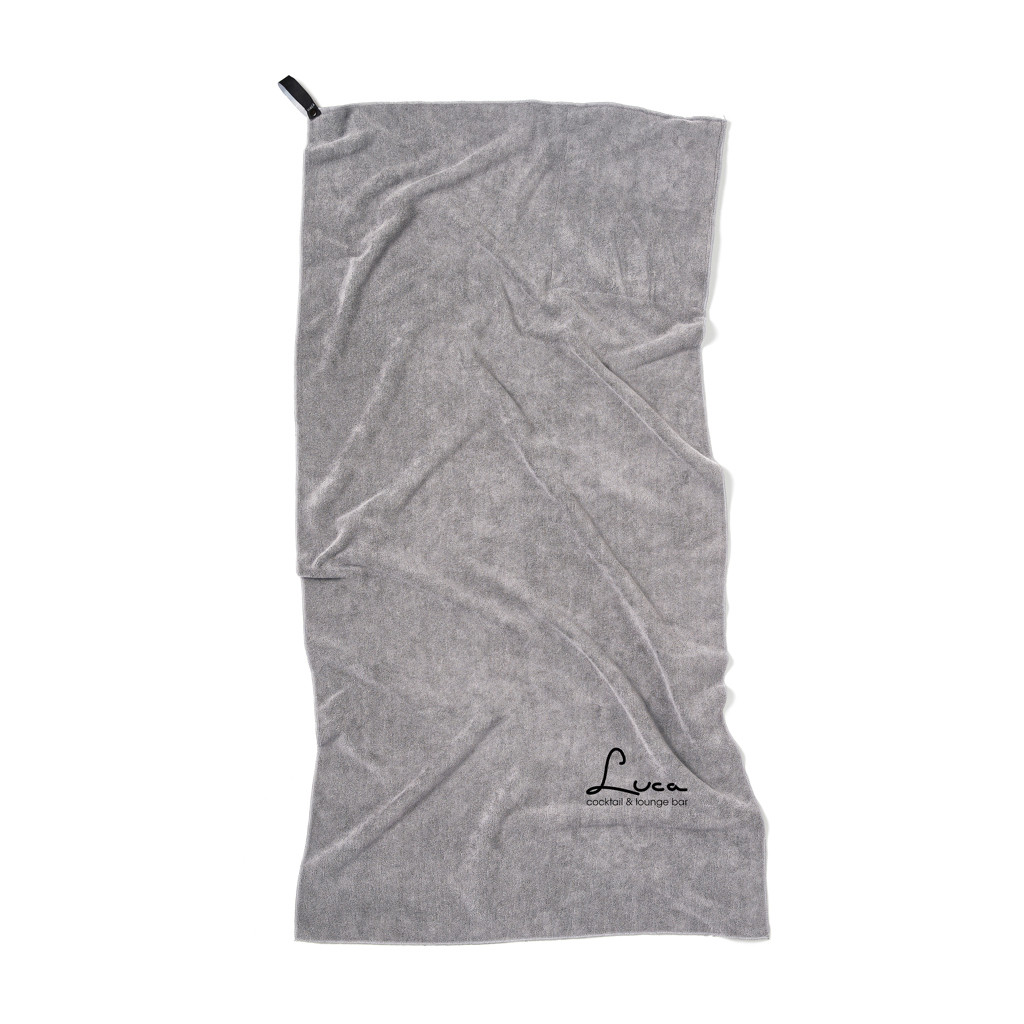 Microfibre sports towel made from recycled PET bottles. Its unique terry feel makes this towel absorb more water and dry three times faster than a traditional towel. Great for outdoor activities and sports. Lightweight and compact, the towel is an ideal size for travel or the gym. This item is made using GRS certified recycled PET. GRS (Global Recycled Standard) is a standard to verify the recycled content of a product throughout the whole supply chain. Total recycled content: 52% based on total item weight. Certified by Control Union, CU1162221.
