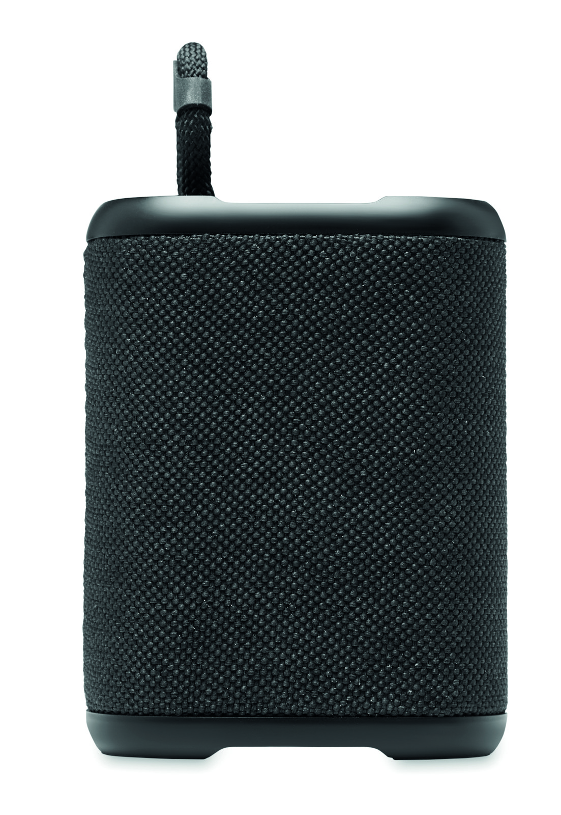 5.0 wireless speaker in ABS with 30 % hemp and 70% polyester fabric finish, IPX7 splash proof with handle. 1 Rechargeable Li-Ion 1800 mAh battery. Output data: 5W, 4 Ohm. Playing time approx. 8h.