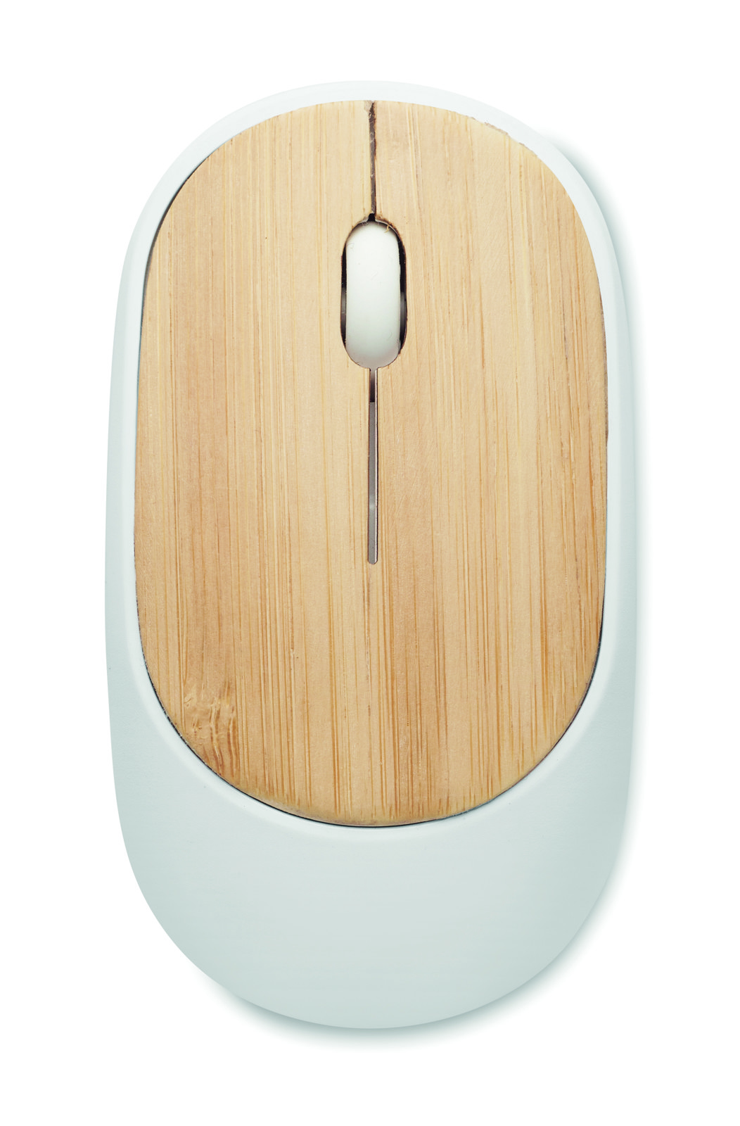 Wireless optical mouse in recycled ABS with bamboo top. 1 AA batteries not included. Bamboo is a natural product, there may be slight variations in colour and size per item, which can affect the final decoration outcome.