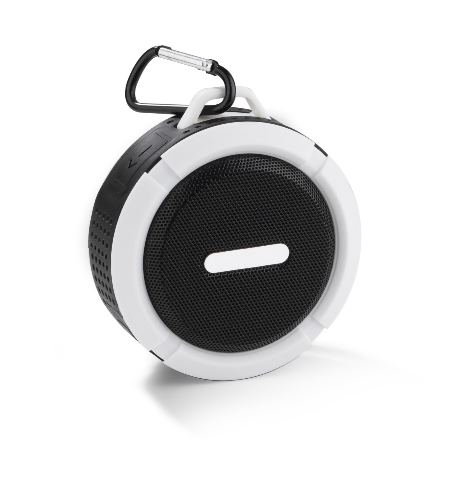 A small speaker with suction cup FUSION. It is ideal for tourists and in every day use e.g. under light rain. The speaker can be used as a hands-free set. Music can be played via Bluetooth (Version 4.2) or micro SD card. Micro USB charging cable and carabiner included. It has a metal plate designed to comply with the marking. The product complies with relevant European Union Directives and has the CE Certificate. Technical specifications: Output power: 3W x 1 Voltage: 5V S/N ratio: ≥ 70 dB, working time: 1-1.5 hours, 300mAh battery capacity