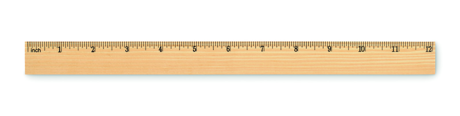 Pine wood ruler 30cm with centimetre scale on one side and inch scale on the other.