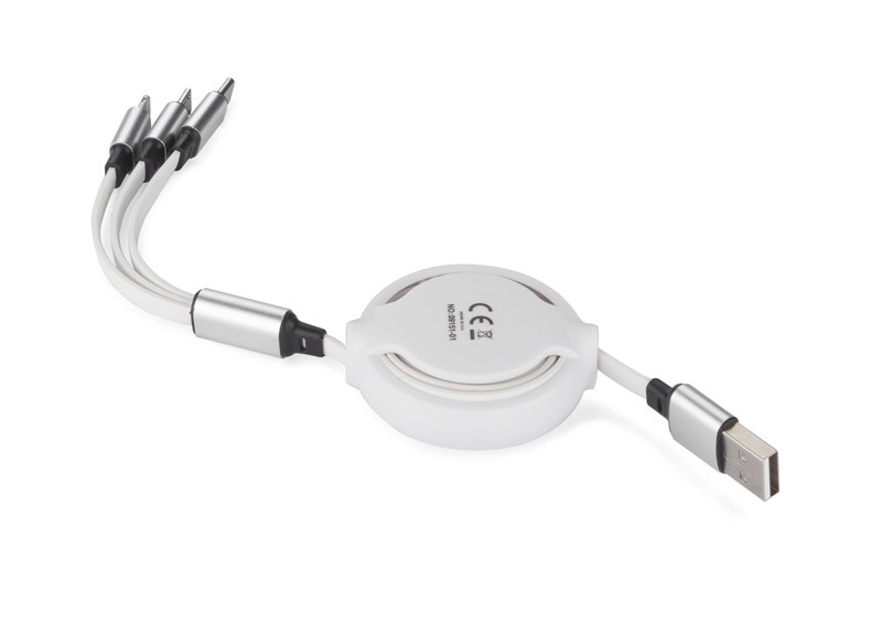 Sissetõmmatav BALJO USB-kaabel ühendab endas stiili ja praktilisuse. Tänu oma nutikale kujule ei pea sa enam kartma, et kaabel sassi läheb. See kaabel on varustatud kolme erineva otsaga, mis sobivad erinevate seadmete laadimiseks: USB Type-C, Lightning (iPhone) ja micro USB. Korpus on valmistatud vastupidavast materjalist ning kaabel on kaetud pehme, käega meeldiva kummiga, mis tagab pikaajalise vastupidavuse ja mugava kasutamise. Laieneb kuni 113 cm. Telli oma logoga ja muuda oma bränd silmapaistvaks!