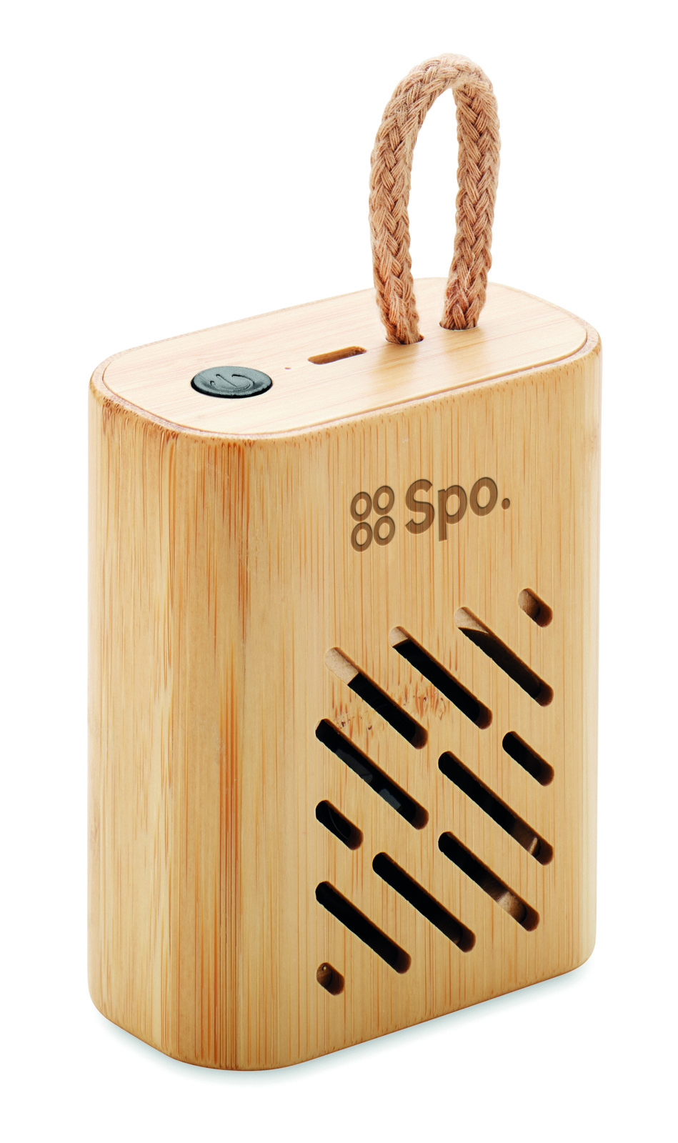 Nautige kvaliteetset heli stiilses ja keskkonnasõbralikus pakendis! 3W juhtmevaba kõlar, mille korpus on valmistatud bambusest ja millel on LED-tule indikaator. Seade on varustatud 1 taaslaetava Li-Pol 300 mAh akuga, mis tagab kuni 4 tunni mänguaega (70% akust). Väljundandmed: 3W, 3 Ohm ja 5V. Tüüp C. Bambus on looduslik taimne kiud, mistõttu võib iga toote värv ja suurus veidi erineda, mis lisab igale eksemplarile unikaalsust. Lisa oma logo sellele kaunile ja praktilisele kõlarile, et viia oma brändi sõnum kuulajateni!