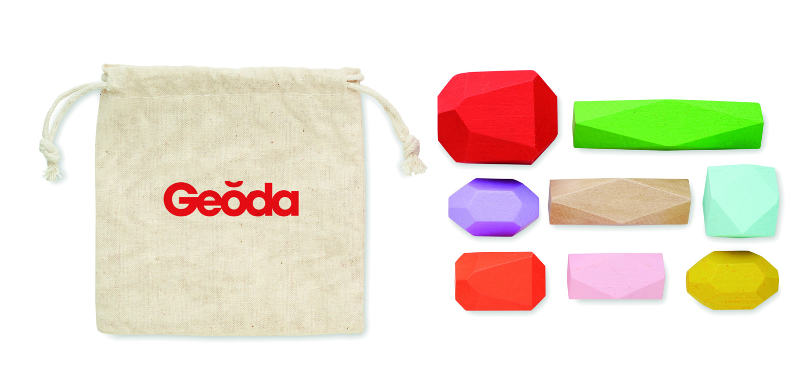 Avastage oma loovus nende 8 värvilise puidust virnastatava kivi abil, mis on mugavalt pakendatud kvaliteetsesse puuvillasesse nöörikotti. Need kivid on ideaalne valik, et tutvustada oma ettevõtte brändi või isiklikku stiili, lisades neile oma logo. Suurepärane kingitus või reklaamtoode, mis toob rõõmu ja inspiratsiooni igasse koju või kontorisse.