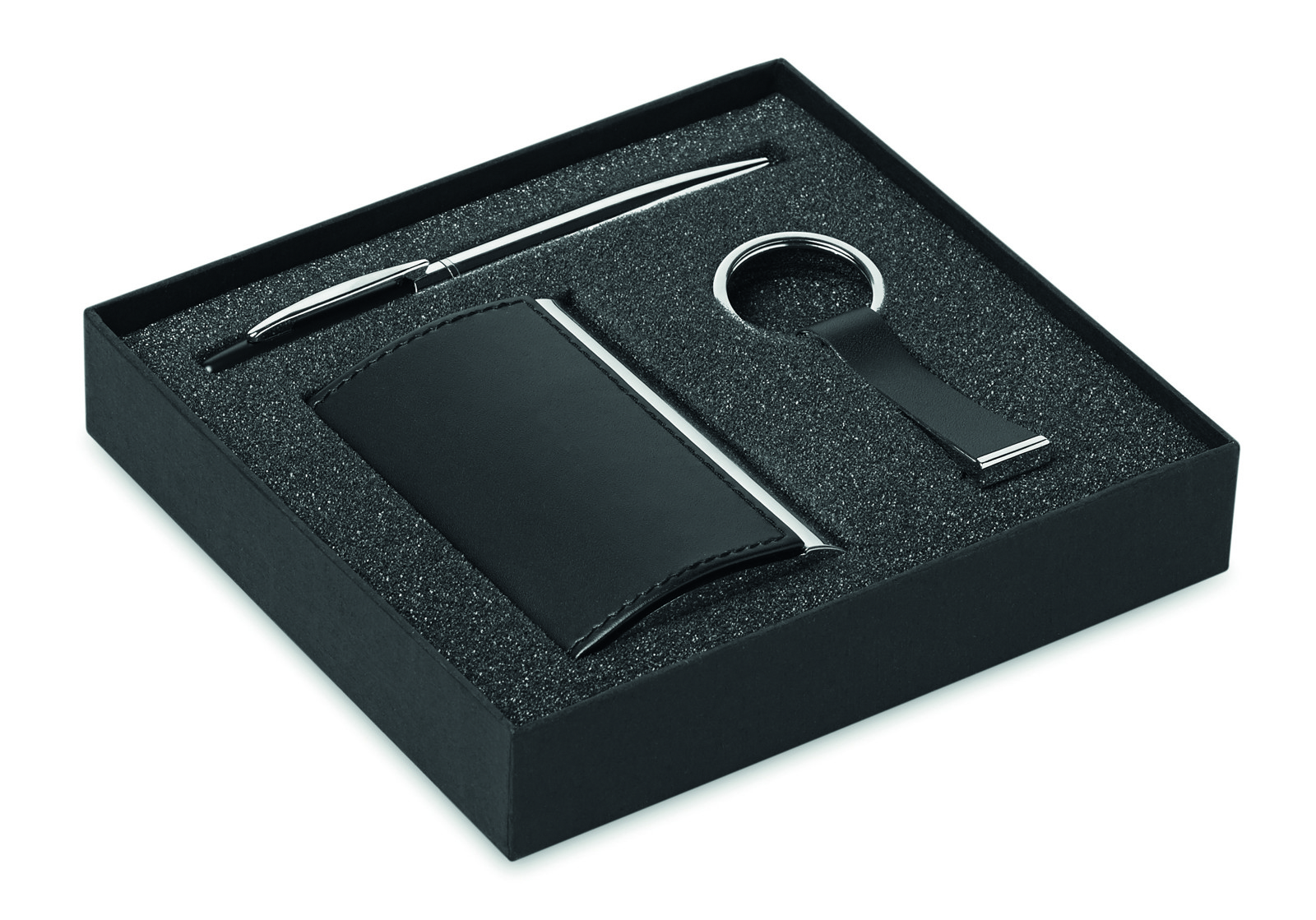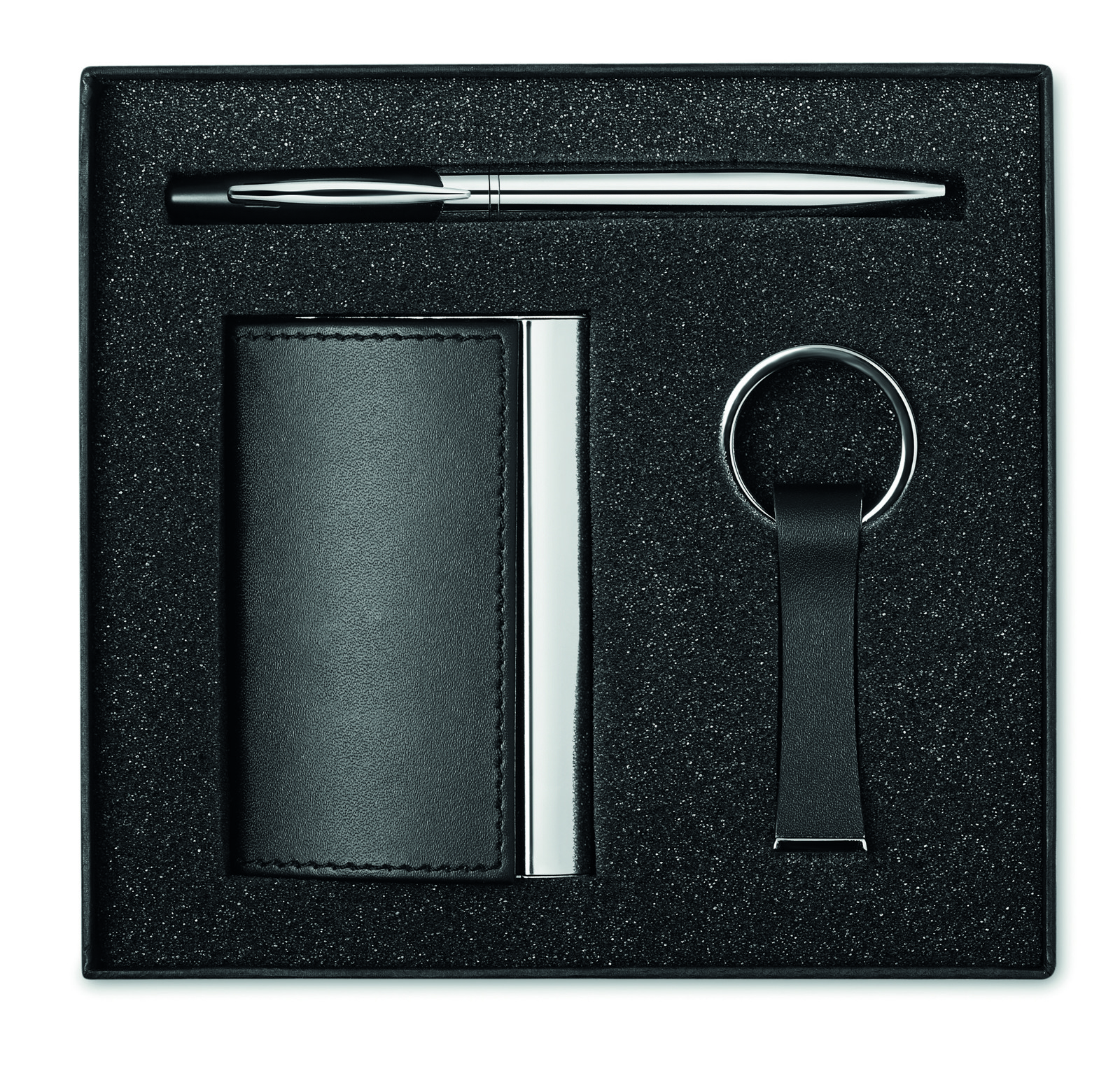 Elegantne ärikingituste komplekt on ideaalne valik koostööpartnerite, töötajate või klientide tänamiseks ning ärisuhete väärtustamiseks. Komplekt sisaldab metallist keeratavat pastapliiatsit musta tindiga, tsingisulamist võtmehoidjat kunstnahast detailiga ning viimistletud visiitkaardihoidjat, mis mahutab mugavalt vajalikud kontaktid või kaardid. Kõik esemed on esinduslikult pakendatud kinkekarpi, mis loob luksusliku ja professionaalse üldmulje. Minimalistlik ja ajatu disain sobib suurepäraselt ärikeskkonda ning annab hea võimaluse toodete graveerimiseks või logoga personaliseerimiseks. See komplekt ühendab praktilisuse ja esinduslikkuse, olles meeldejääv kingitus, mis leiab igapäevast kasutust ja hoiab brändi nähtavana õigel hetkel ja õigetes kätes.