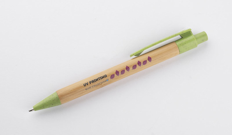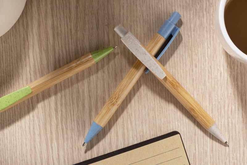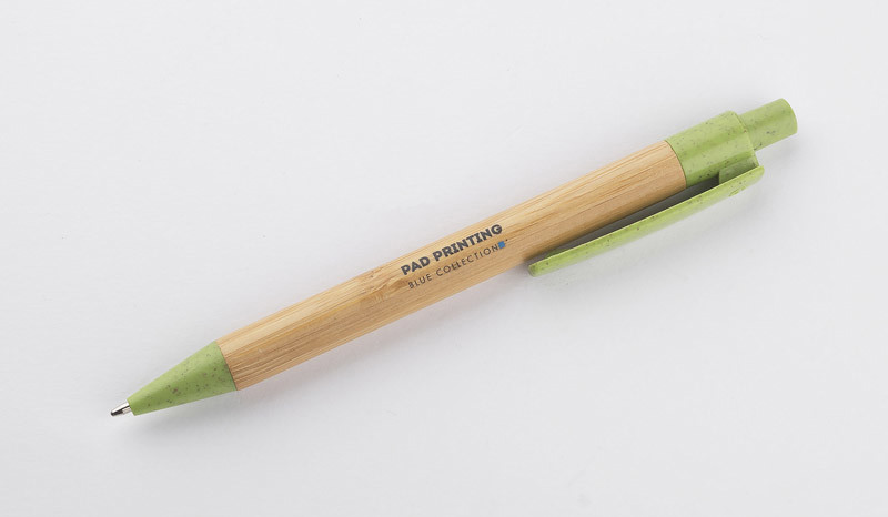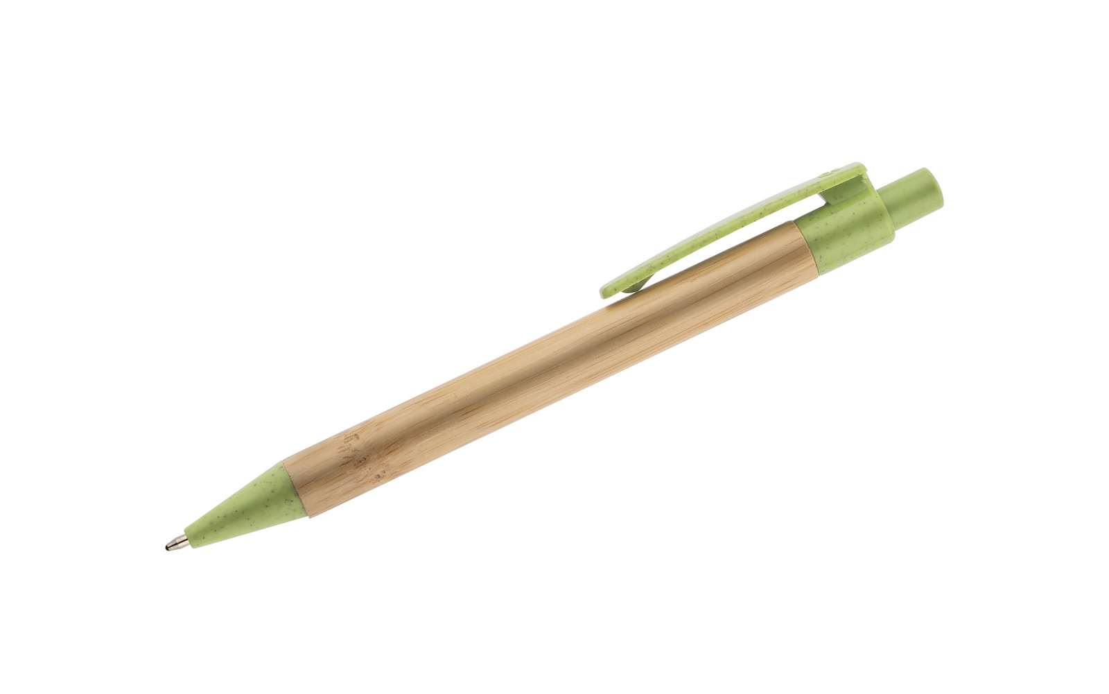 BAMMO is a classic pen made of environmentally friendly materials. The bamboo body has been combined with finishing details made of plastic with 50% straw admixture. Retractable ballpoint pen, blue refill.