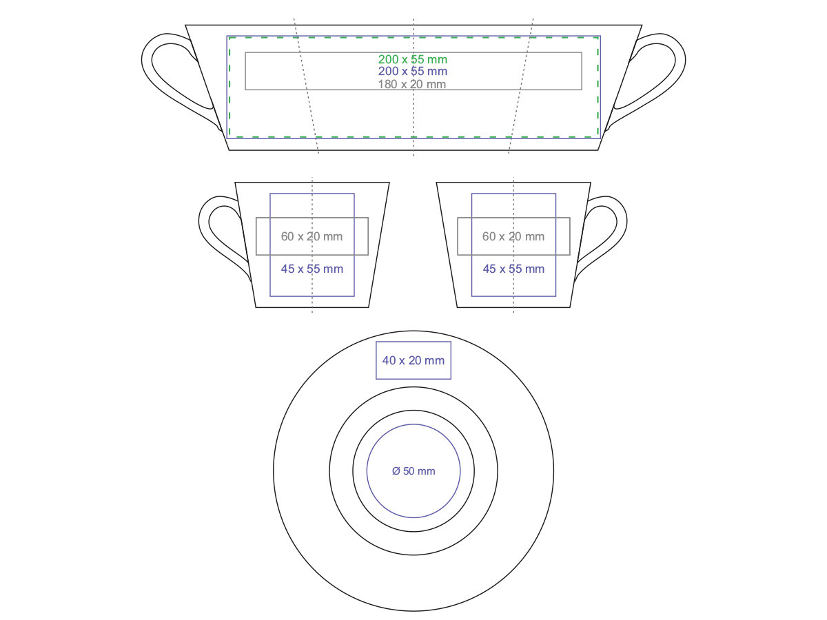 Valmistatud kvaliteetsest portselanist, see elegantne tass on ideaalne valik igasuguste jookide nautimiseks. Tassil on sirged seinad, mis rõhutavad kaunistust ning annavad võimaluse luua silmapaistvaid ja mitmevärvilisi väljatrükke. Kompaktne alustass täiendab komplekti ja muudab selle suurepäraseks reklaamtooteks, kuhu saad trükkida oma logo.