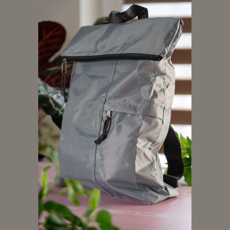 Lightweight foldable backpack crafted from 420D rPET, easily folded into a compact pouch. Ideal for travel and convenient storage.
