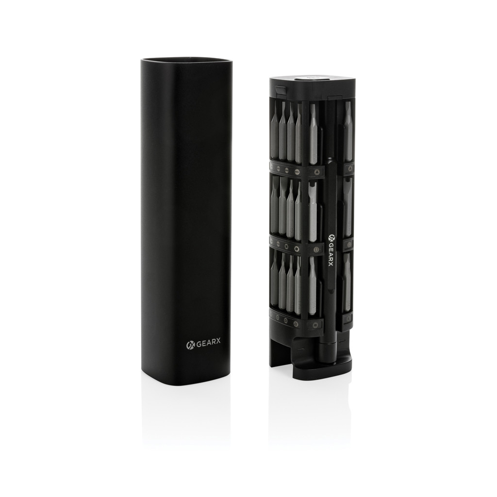 Tutvustame Gear X täppiskruvikeerajate komplekti, mis koosneb 46 osast ja on ideaalne valik mobiiltelefonide, tahvelarvutite, personaalarvutite ja muude seadmete parandamiseks. See kõrge jõudlusega komplekt aitab pikendada enamikku elektroonikaseadmete eluiga lihtsa remondi abil, mille leidmine on veebis kerge. Komplekt on pakendatud RCS sertifikaadiga taaskasutatud alumiiniumist karpi, kus taaskasutatud materjalide osakaal on 22% eseme kogukaalust. RCS-sertifikaat tagab, et kõik taaskasutatud materjalid on täielikult sertifitseeritud ja jälgitavad tarneahelas. Komplekti kuuluvad mugav kruvikeeraja käepide ja pintsetid, mille magnetilised otsad muudavad nende paigaldamise ja eemaldamise lihtsaks. Telli see toode ja kanna oma logo peale, et tuua oma bränd inimesteni!