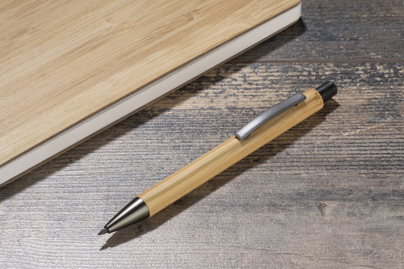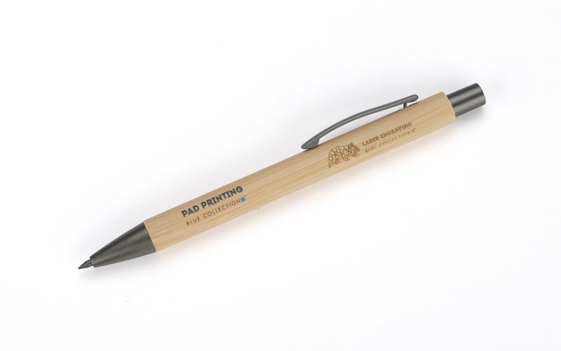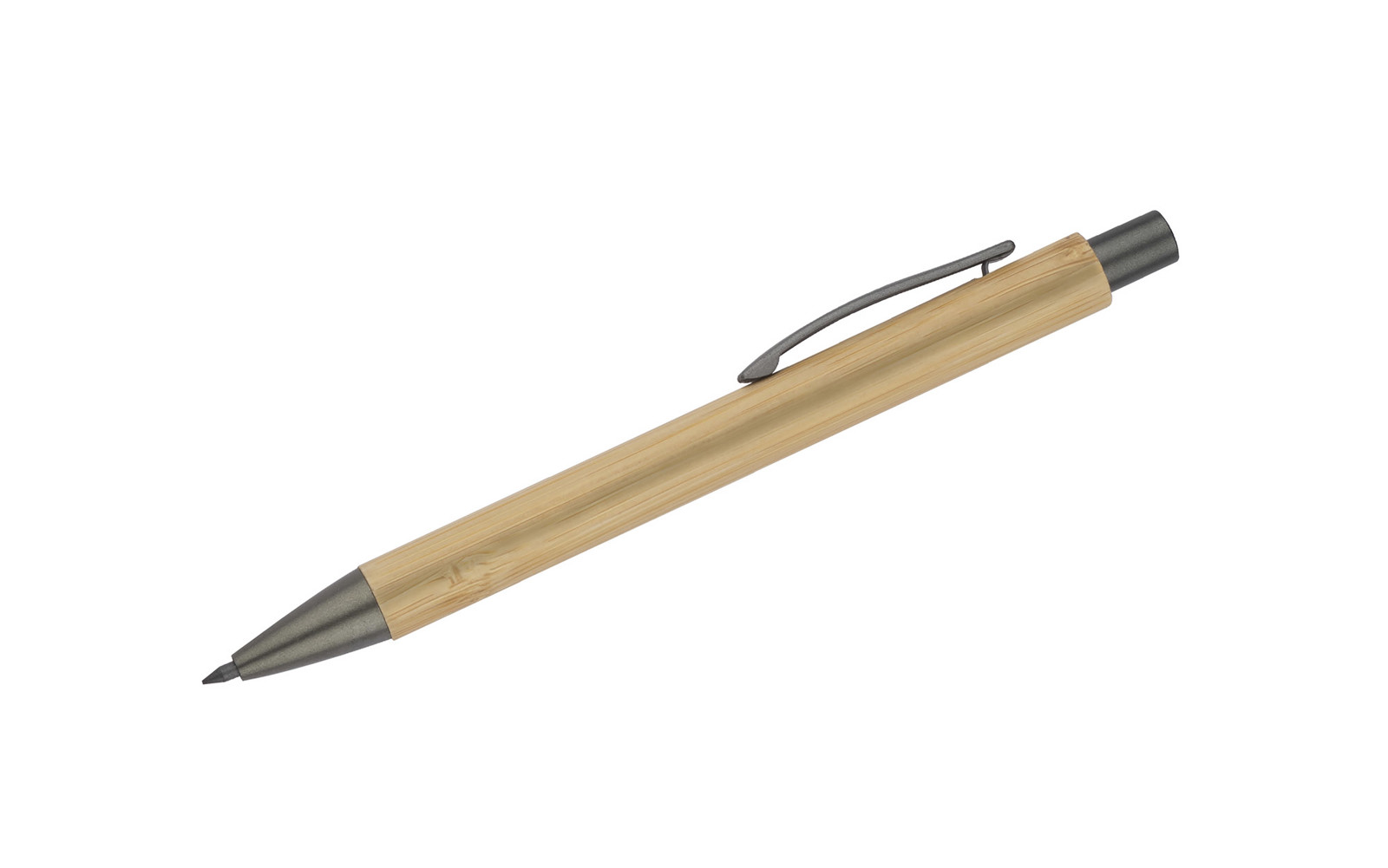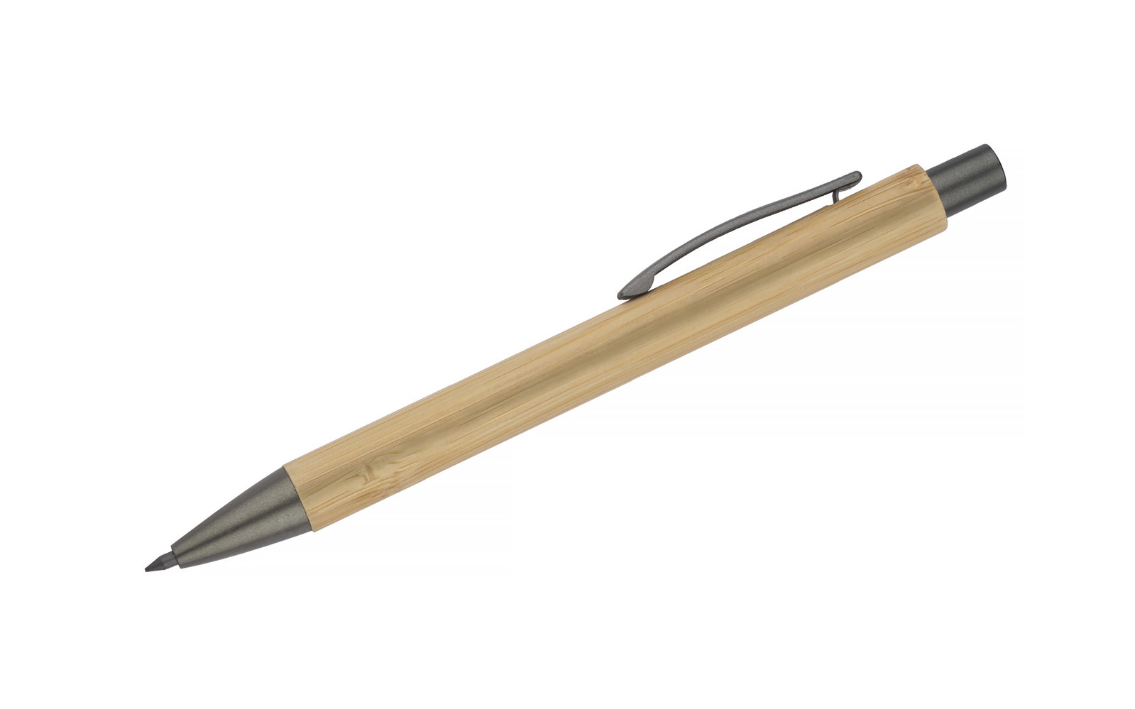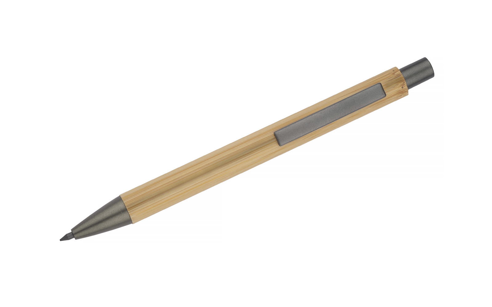 Igavene pliiats EVER on valmistatud spetsiaalsest karastatud pliiatsist, mis tagab kirjutamismugavuse, sarnaselt värskelt teritatud pliiatsile. Pliiatsil on sama mehhanism nagu pastapliiatsil, mis muudab selle kasutamise lihtsaks ja mugavaks. Korpus on valmistatud looduslikust bambusest, millel on grafiitvärvi metallelemendid, andes tootele kaasaegse ja stiilse ilme. Lisa oma logo sellele praktilisele ja keskkonnasõbralikule pliiatsile ning tutvusta oma brändi igapäevaelus!