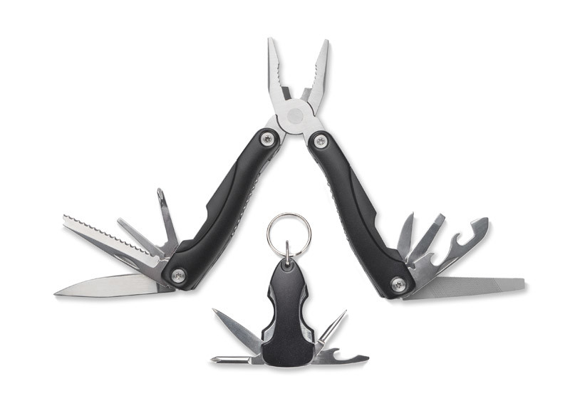 TOOL on mitmeotstarbeline kingikomplekt, mis sisaldab praktilist tööriista ja ripatsit. Tööriist on varustatud järgmiste funktsioonidega: tangid, lõikur, sileda teraga nuga, saag, lame- ja Philipsi kruvikeeraja, viil ning pudeli- ja plekiavaja. Kõikidel komponentidel on mugav lukk, mis tagab nende turvalise kasutamise. Ripats sisaldab nuga, lame- ja Philipsi kruvikeeraja, viili ning pudeli- ja plekiavajat. Mõlemad tooted on pakendatud keskkonnasõbralikku pappkarpi, mis teeb need suurepäraseks valikuks nii ettevõtetele kui ka eraisikutele. Mitmeotstarbeline tööriist mõõdab 158 x 68 x 23 mm, samas kui ripatsi mõõtmed on 30 x 60 x 18 mm. Kingi oma logoga see praktiline kingikomplekt, et tuua oma bränd lähemale oma klientidele!