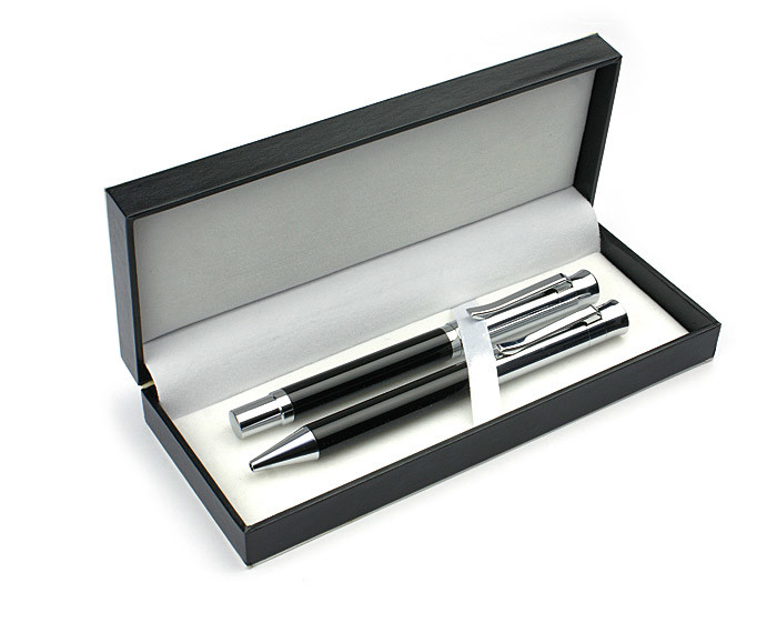 WASHINGTON D. kirjutuskomplekt sisaldab kvaliteetset metallist pastapliiatsit ja rullpliiatsit, mis on elegantse nahataolise (PU) korpusega. Komplekt on pakendatud stiilsesse valgesse karpi, mis lisab sellele veelgi enam väärtust. Graveerime pastakale ja rullpliiatsile teie logo, et muuta see ideaalne reklaamtoode teie ettevõtte brändi tutvustamiseks.