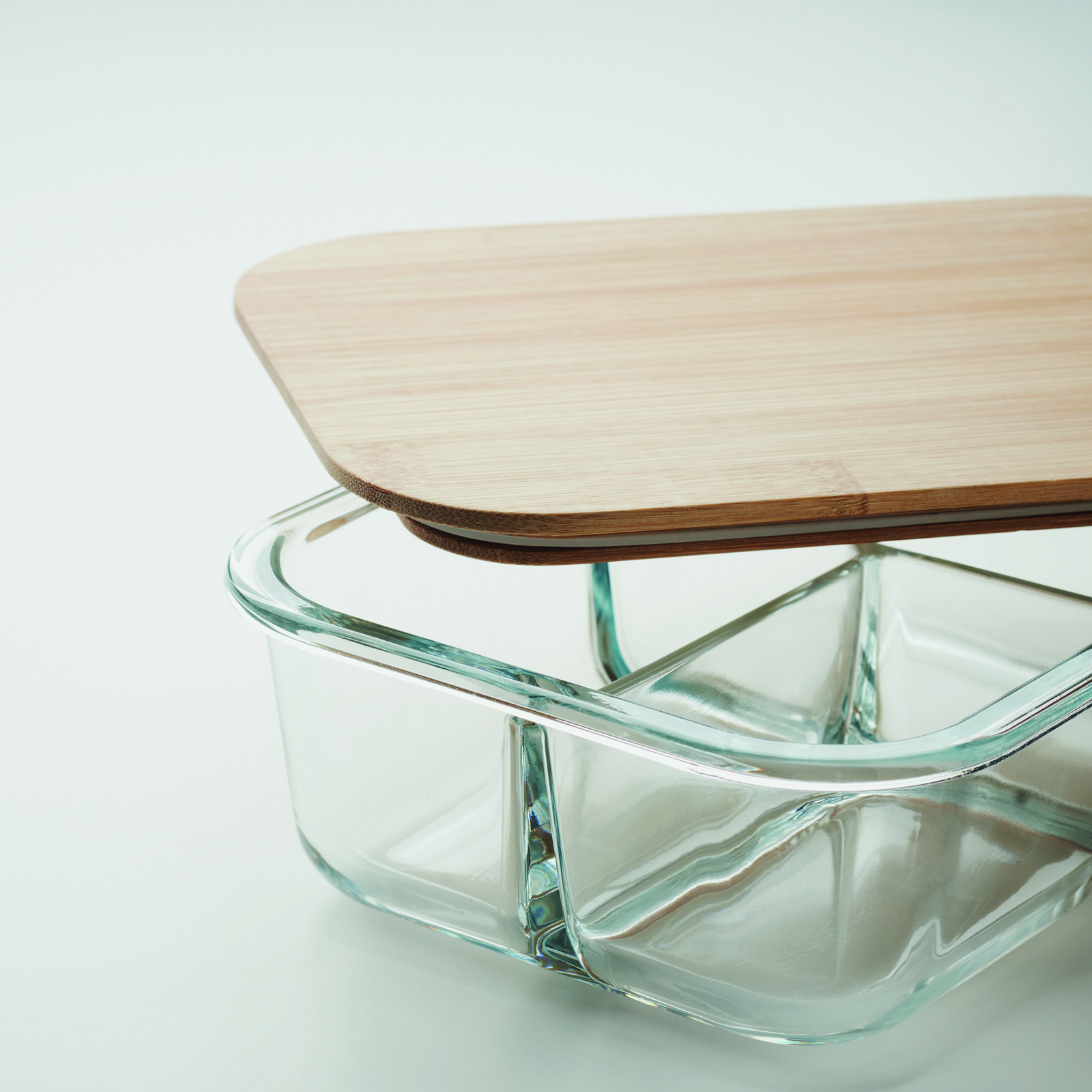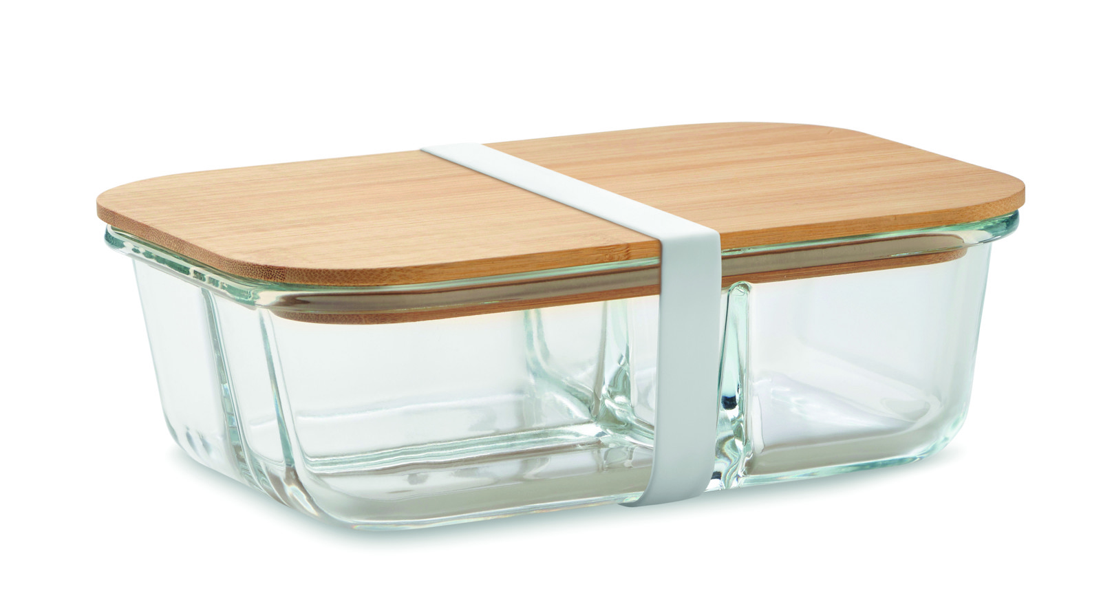 Boorsilikaatklaasist valmistatud lõunakarp, millel on kolm kambriga ja praktiline bambusest kaas silikoonpaelaga. Selle mahutavus on 800 ml, mis võimaldab mugavalt transportida erinevaid toite. Bambus on looduslik toode, mistõttu võib iga eseme värv ja suurus veidi erineda, mõjutades lõppviimistlust. Saada oma logo sellele elegantsele lõunakarbile ja tõsta esile oma brändi igapäevastes toidukordades!