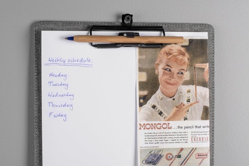 CLIPAD klambripadjad on hädavajalik abivahend igal konverentsil või ärikohtumisel. Need võimaldavad mugavalt hoida kõik vajalikud dokumendid korras ja käepärast. Klambripadjal on ka riidepuu, mis lihtsustab selle riputamist. Valmistatud taaskasutatud rPET plastikust, mis on keskkonnasõbralik valik. Lisa oma logo sellele praktilisele tootele ja tõsta oma brändi nähtavust!