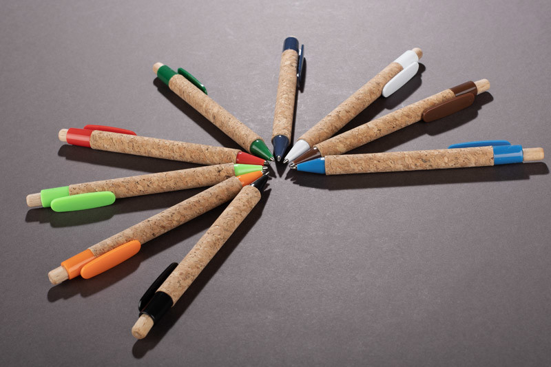 KORTE pastapliiats toob esile taaskasutuse idee tänu oma ainulaadsele disainile. Pliiatsi tünn on valmistatud looduslikust korgist, mis on ökoloogiliselt sõbralik valik. Puidust nupp ja erksates värvides plastikviimistlus lisavad tootele silmapaistvust ja võlu. Sinine täidis tagab sujuva kirjutamise. Telli KORTE pastapliiats oma ettevõtte logoga, et edastada oma brändi sõnum igapäevaselt!