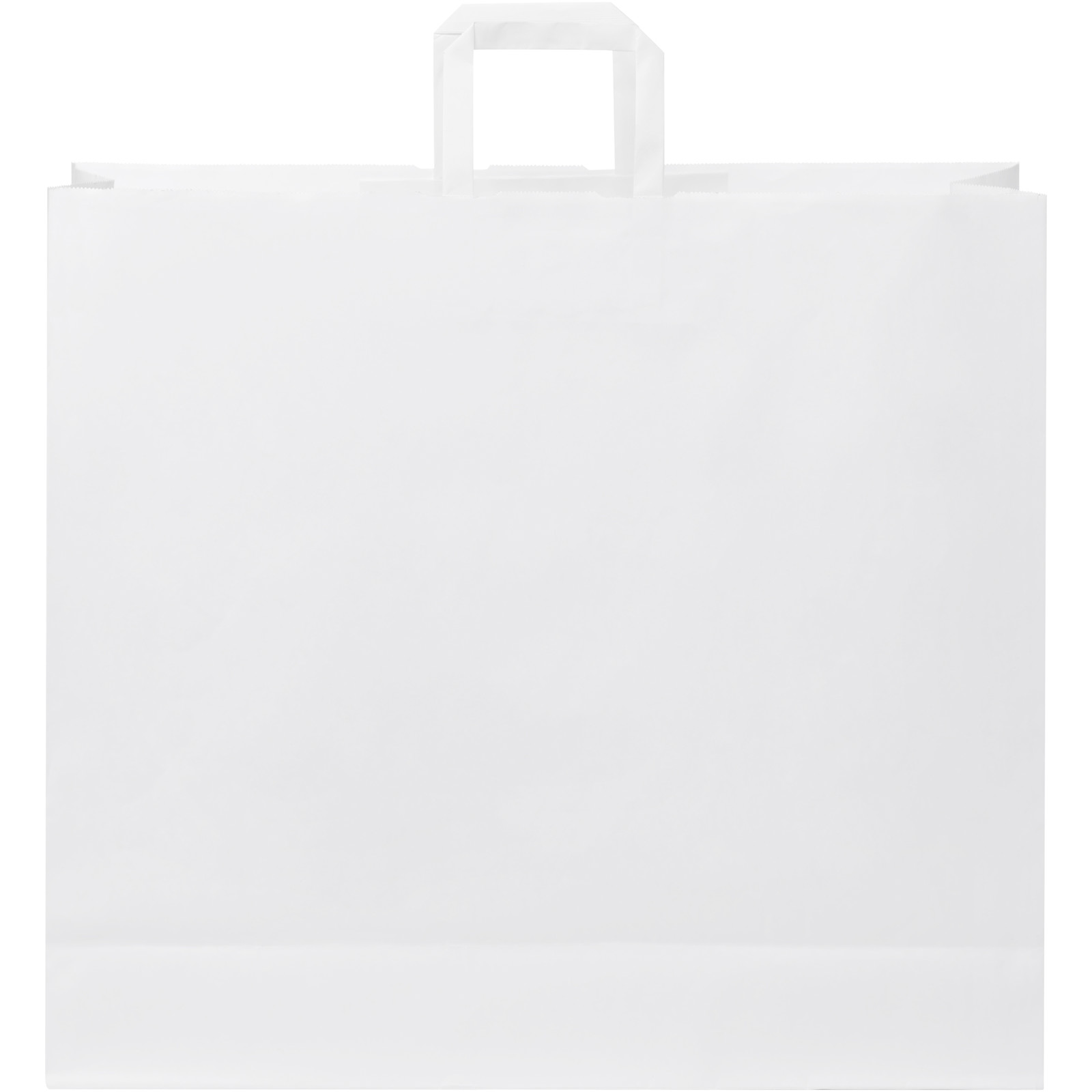 XXL (49.5x14x44 cm) kraft paper bag with flat handles. Made in Europe from responsibly sourced paper (white 100 g/m2, brown 90 g/m2), it is a sustainable and durable packaging solution with ample space for a variety of items. The natural and rustic appearance of the kraft paper adds an elegant touch to any occasion. Perfect for shopping, gifts, or events, this bag is an eco-friendly alternative to plastic bags. Embrace practicality and environmental responsibility with our kraft paper bags.