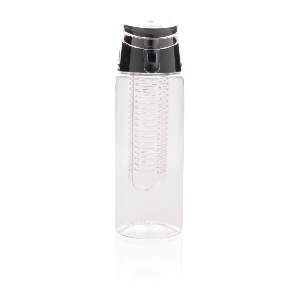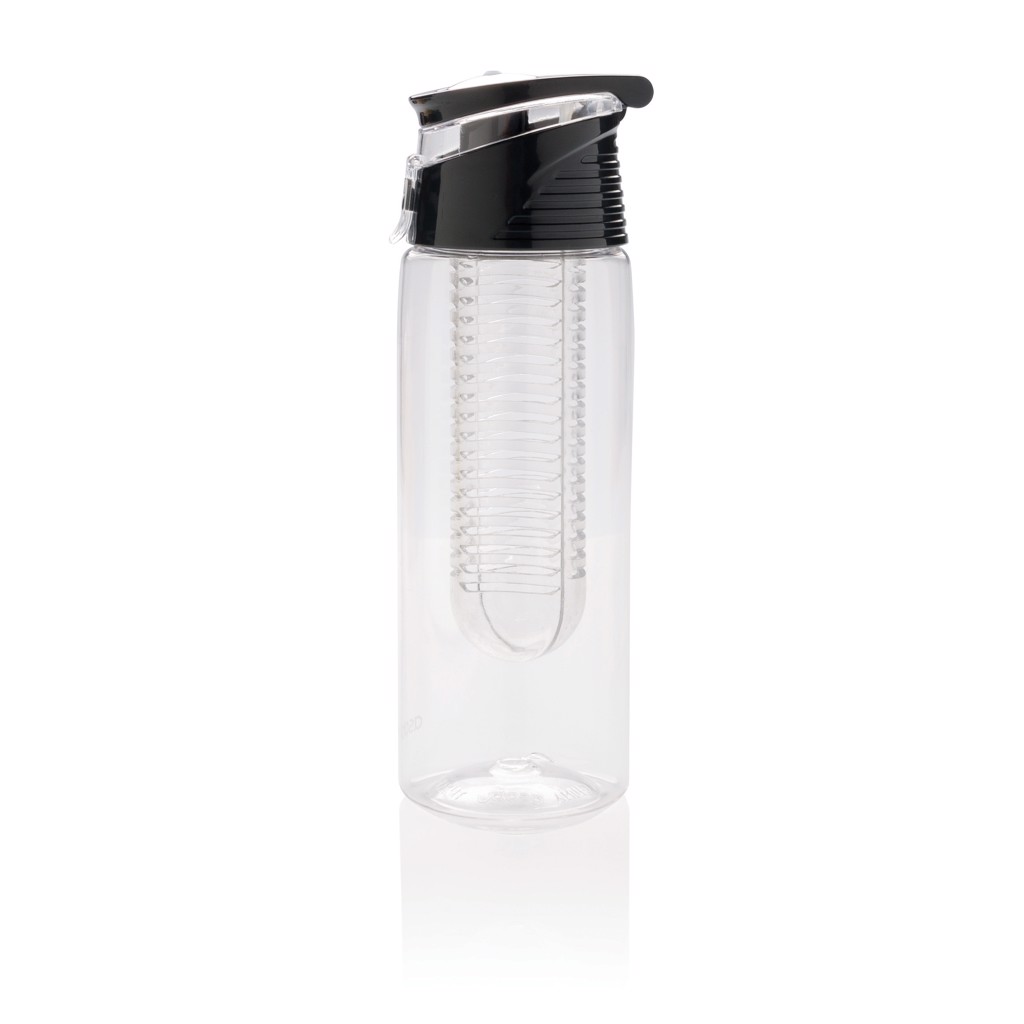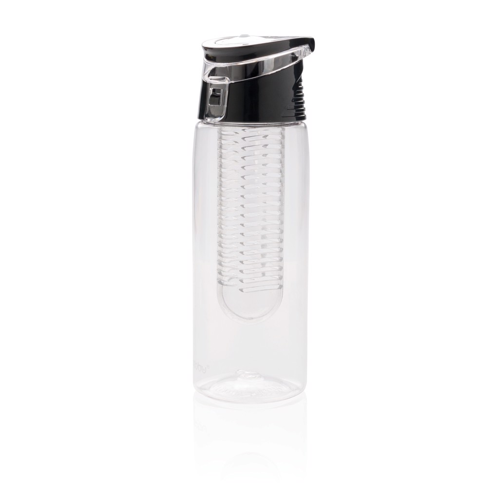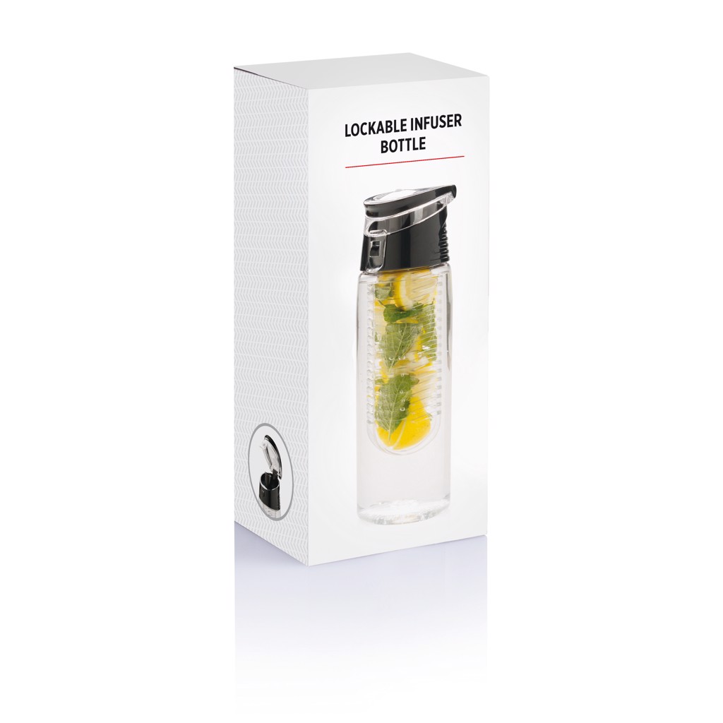 Trendy infuser bottle to flavour your water with your favourite fruit or herbs. The body is made out of tritan material so it is scratch proof and durable. The lid is made out of ABS and has a locking system so you can take your flavoured water wherever you go. Capacity 700 ml.