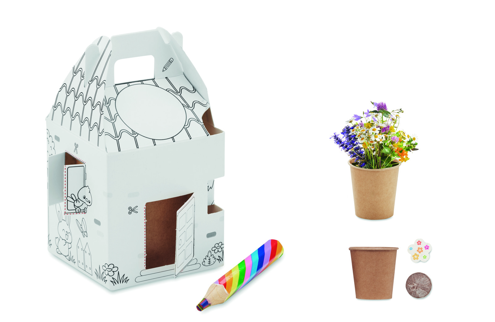 Avasta looduse ilu ja õpi koos lastega taimi kasvatama! See kasvumaja komplekt on ideaalne laste jaoks, sisaldades mesililleseemneid, mis toetavad looduse mitmekesisust. Komplekti kuulub ka mitmevärviline puidust pliiats, millega saad märkida oma seemnete kasvukoha. Kasvata oma ettevõtte logo või isiku brändi nähtavust, kasutades seda toredat ja harivat komplekti.