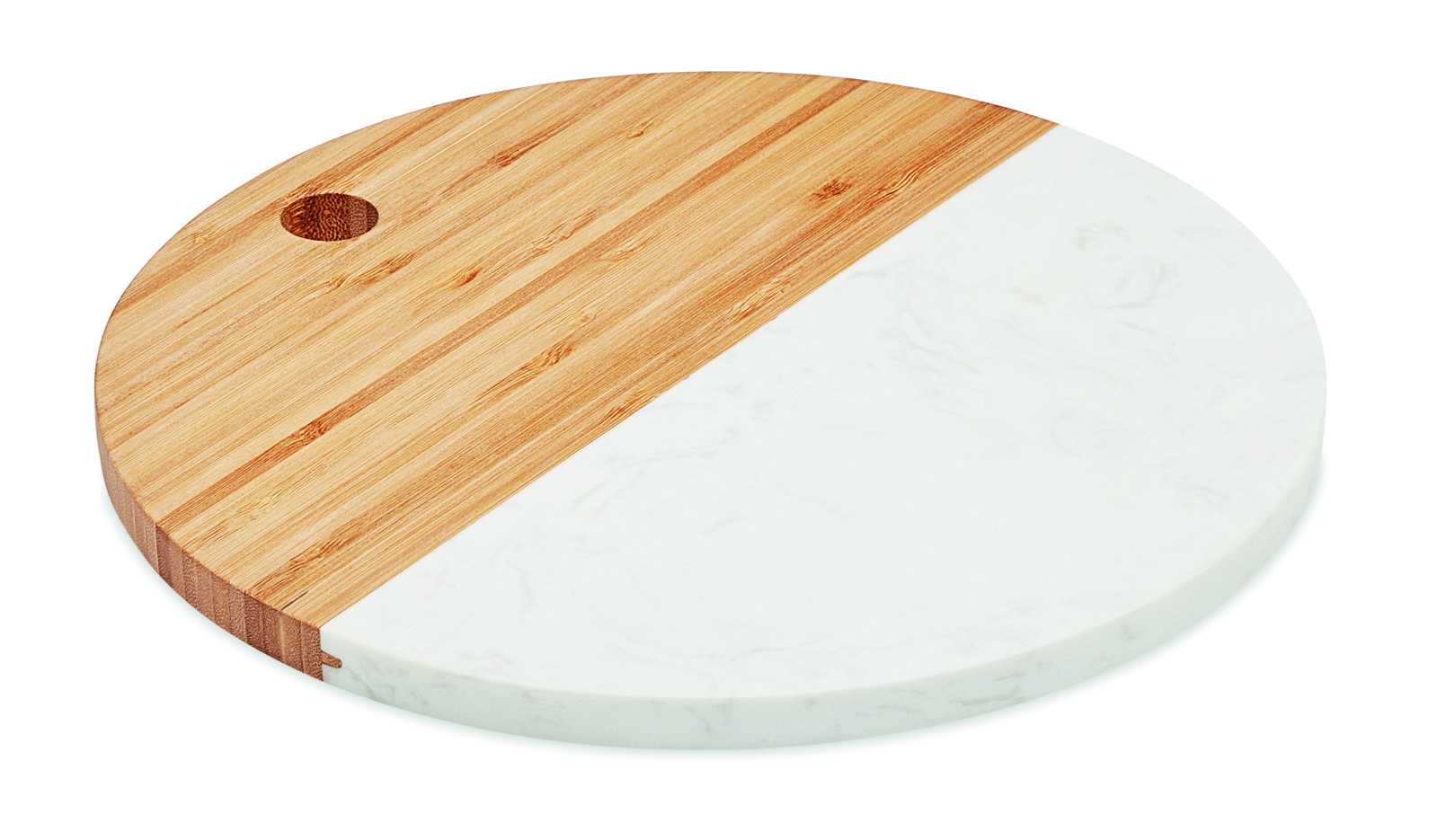 Marmorist ja bambusest valmistatud ringikujuline serveerimislaud toob teie lauale luksusliku välimuse. Bambus on looduslik toode, mistõttu võib igal eseme värvil ja suurusel esineda väikseid erinevusi, mis lisavad igale lauakattesse isikupära. See serveerimislaud on ideaalne valik, et esitleda oma roogasid stiilselt ja elegantset. Kanna oma logo peale, et muuta see ainulaadseks reklaamtooteks, mis tutvustab teie brändi igas sündmuses.