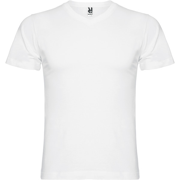 Stiilne ja mugav lühikeste varrukatega T-särk, millel on 2-kihiline v-kaelus. Tugevdatud kaetud õmblused kraes ja õlgades tagavad vastupidavuse ning pikaealisuse. Eemaldatav etikett võimaldab mugavat brändimist, et saaksid oma logo või ettevõtte visuaalse identiteedi esitleda. Modell on 190 cm pikk ja kannab suurust L.