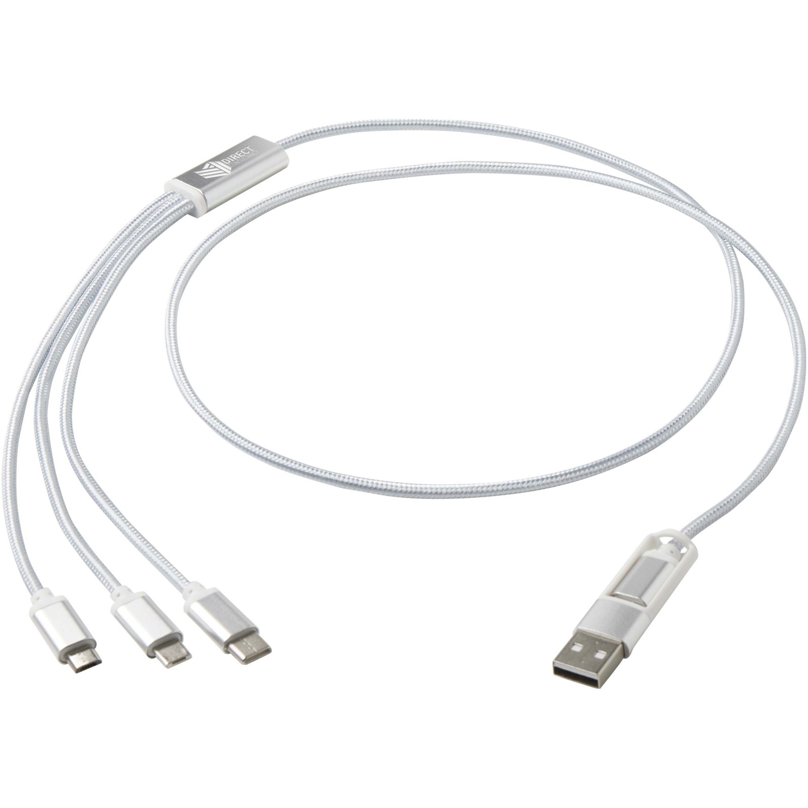 See nutikas laadimiskaabel on varustatud USB-A ja C-tüüpi sisendpistikuga ning kombineeritud C-tüüpi, mikro-USB ja Lightning/Micro-USB väljundpistikuga. Tänu oma mitmekesisele ühendusvõimele saab selle abil laadida enamikku iOS-i ja Androidi nutitelefone, kaameraid, toitepankasid ning kõrvaklappe. Kaabli pikkus on 100 cm, mis tagab mugava kasutamise, ning see on valmistatud taaskasutatud alumiiniumist ja RPET-ist (taaskasutatud PET, mis on keskkonnasõbralik materjal). Soeta see laadimiskaabel oma logoga, et edastada oma brändi sõnum igal ajal ja igas kohas!