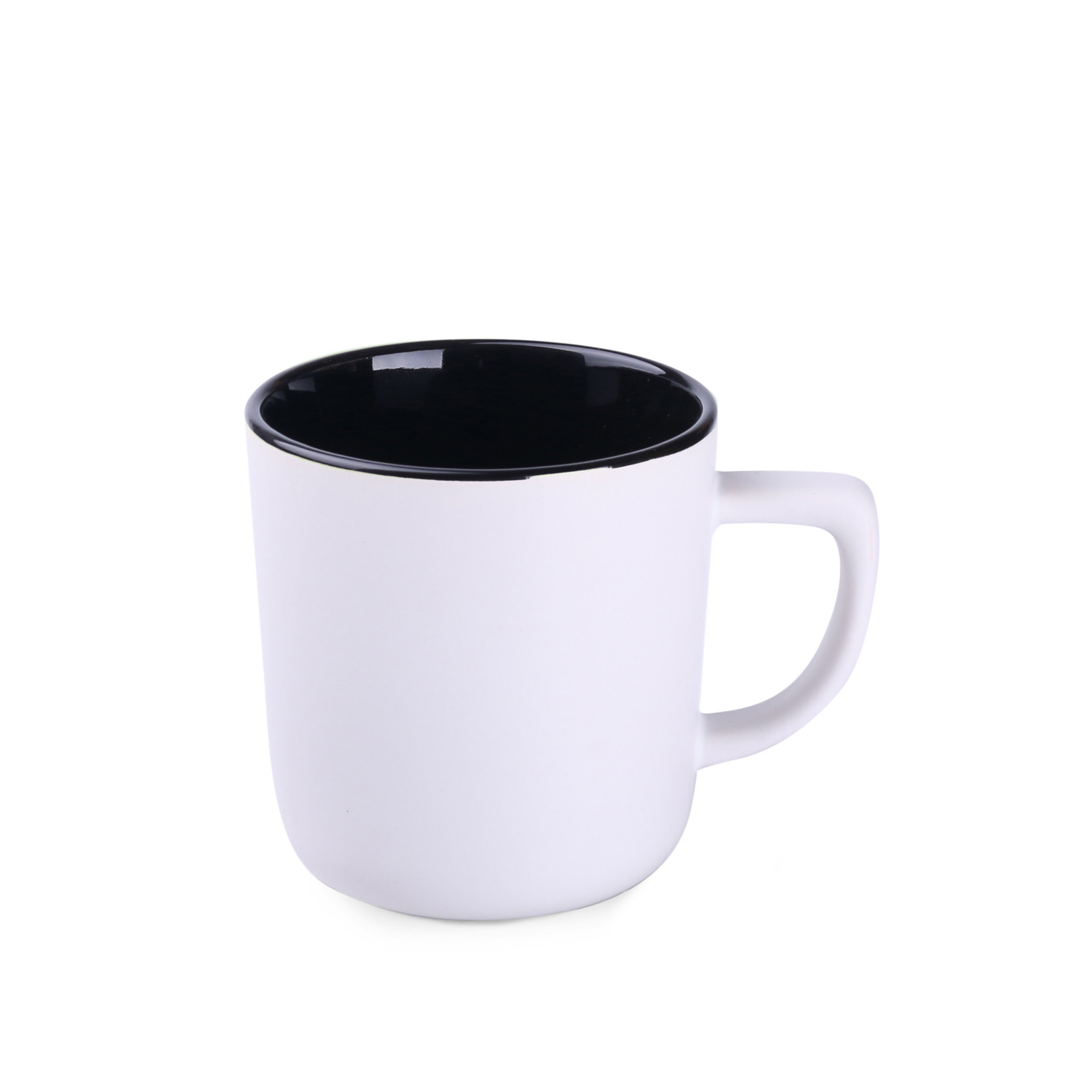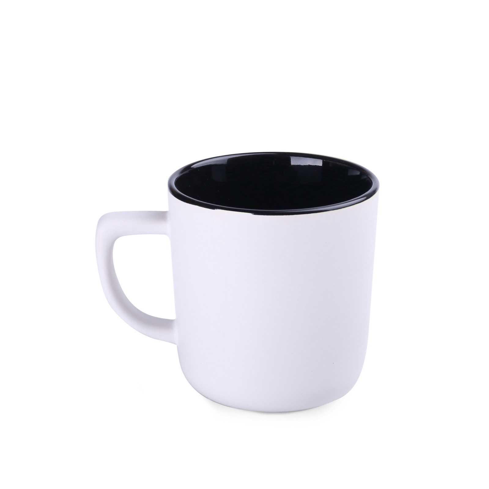 Populaarse kruusi kaasaegne matt vorm laia trükiväljaga. Valge kruus on saadaval 5 värvitäitevariandiga.