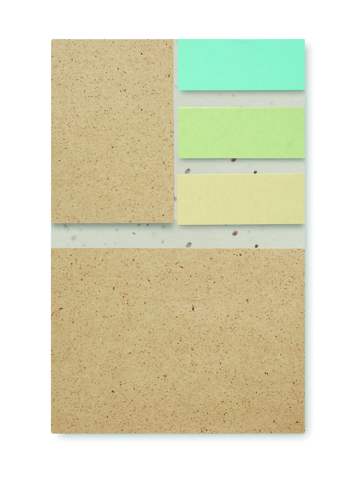 Pehmekaaneline memokomplekt, mis sisaldab kasvavat paberit, 25 kleepuvat murupaberilehte ja 3 värvilist lehemarkerit. Nagu traditsioonilised kollased memoblokid, on ka see ideaalne, et jäädvustada oma märkmed ja kinnitada need soovitud kohta. Kui olete kõik 25 paberilehte ja värvimarkerid ära kasutanud, on aeg memoplokk mulda istutada. Seemned, mis sisaldavad metslilleniidu taime, hakkavad kasvama ja annavad sellele esemele uue tähenduse. Tõeliselt roheline ja jätkusuutlik kontor on tänapäeva ettevõtete jaoks hädavajalik. Valmistatud Euroopa Liidus.
