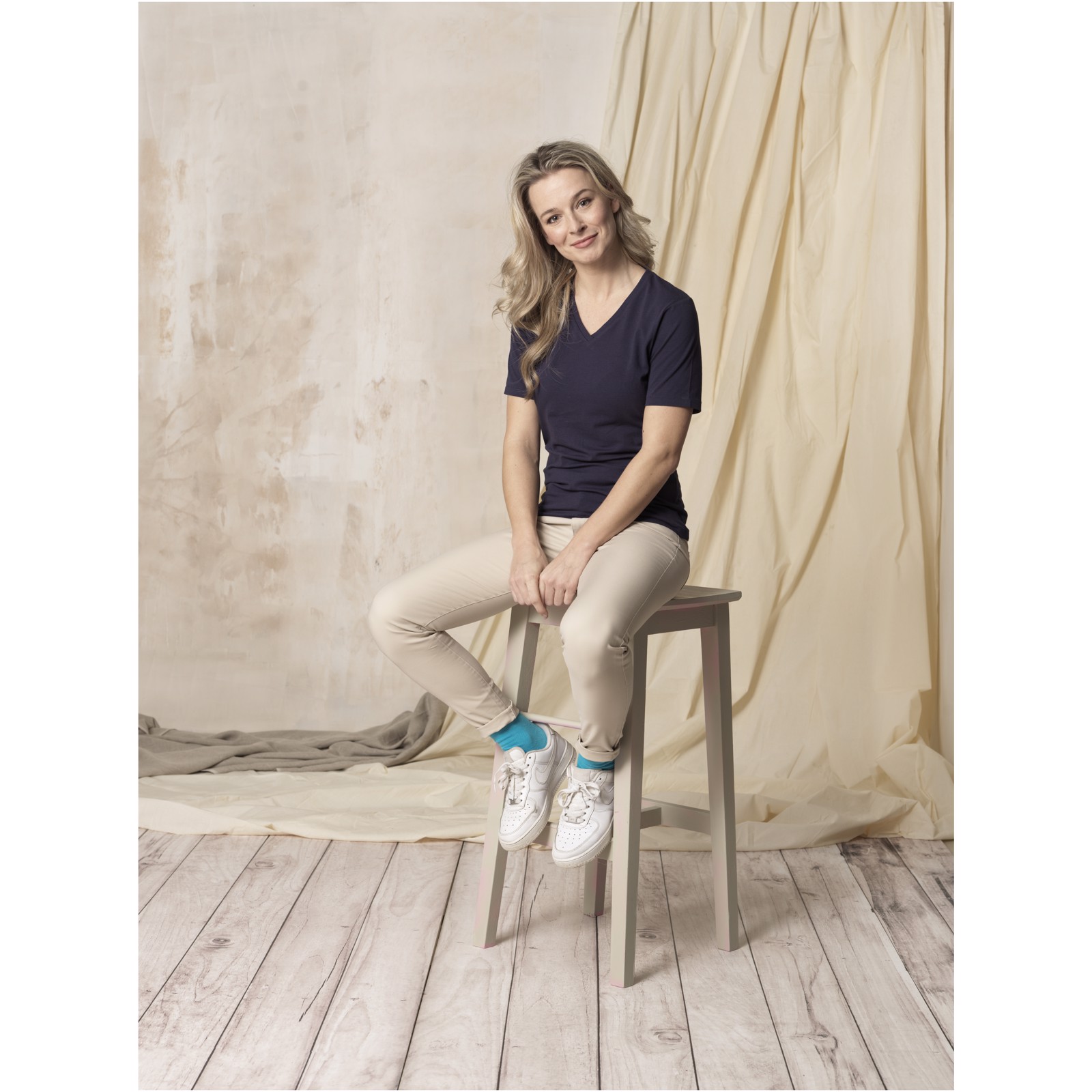 Naiste orgaaniline V-kaelusega T-särk Kawartha lühikeste varrukatega on stiilne ja jätkusuutlik valik, mis sobib igapäevaseks kandmiseks. T-särk on valmistatud 95% orgaanilisest puuvillast, mille kanga kaal on 200 g/m², mistõttu on see mitte ainult keskkonnasõbralik, vaid ka pehme ja mugav. 5% elastaani tagab veniva ja mugava istuvuse. V-kaelus ja lühikesed varrukad teevad sellest ideaalse toote, mida saab täiustada oma logoga, et edastada oma brändi sõnumit stiilselt ja keskkonnasõbralikult.
