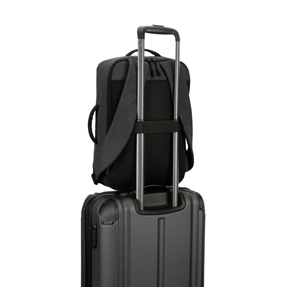 NIAMEY sülearvuti seljakott on valmistatud suure tihedusega 300D taaskasutatud polüestrist, mis tagab vastupidavuse ja keskkonnasõbralikkuse. Kotil on põhisahtel, mis mahutab kuni 15,6" sülearvuteid ja avanev disain võimaldab mugavat juurdepääsu. Suur esitasku pakub lisaruumi, samas kui küljekäepide ja kompaktne kuju võimaldavad seljakoti kasutamist ka portfellina. Seljakoti tagaküljel on võrgust käru rihm. Mahutavus on kuni 15 L. Mõõdud: 300 x 410 x 110 mm.