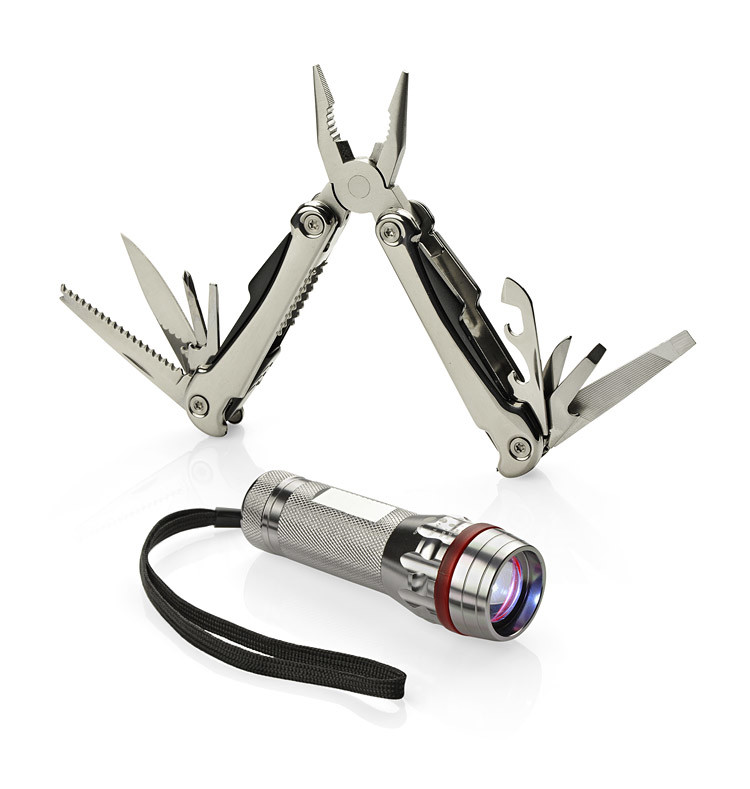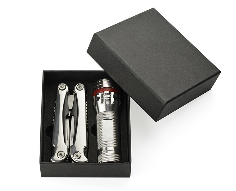 Tinkeri reisikomplekt on ideaalne kink, mis sisaldab kvaliteetset taskulampi ja multifunktsionaalset multitööriista. Taskulampil on ere diood, reguleeritav valgusvihk (suumifunktsioon) ning kolm erinevat valgusrežiimi: tugev, nõrk ja vilkuv. Iga toote element on valmistatud vastupidavast metallist ning komplekt on elegantsetes mustades karpides, mis lisab sellele luksuslikku välimust. See on suurepärane võimalus, et viia oma logo ja brändi sõnum otse klientide ette.