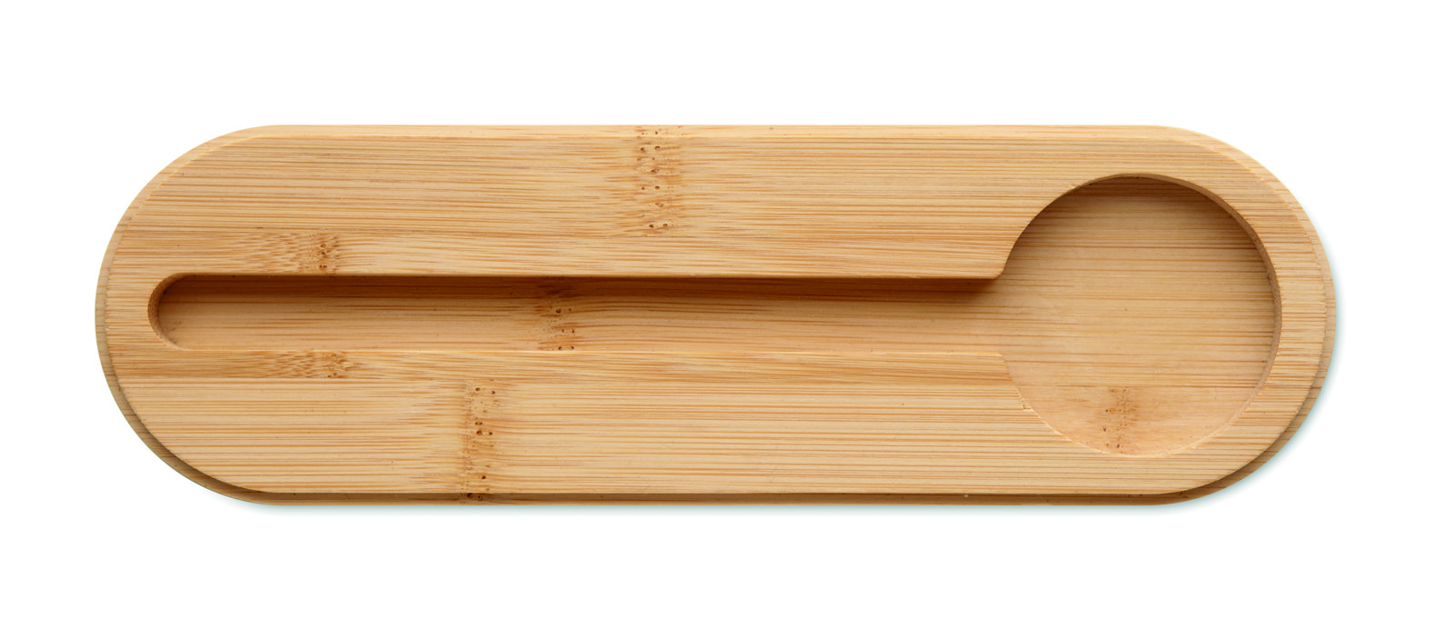 RPET materjalist viltpliiatsikott, millel on elegantne bambusest kaas ja praktiline integreeritud telefonihoidik. Pliiatsikoti mõõtmed on 5,5 tolli (umbes 14 cm) ja 13,5 cm, mis muudab selle sobivaks erinevate kirjutusvahendite ja väikeste tarvikute hoidmiseks. Elastne sulgemisrihm tagab, et sisu jääb turvaliselt paika. Lisa oma ettevõtte logo ja loo stiilne reklaamtoode, mis tõmbab tähelepanu!