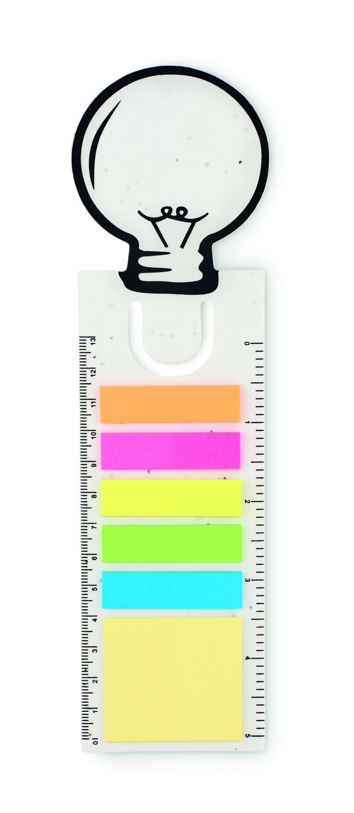 Lambipirnikujuline järjehoidja, mis on valmistatud ökoloogilisest seemnepaberist. Komplekt sisaldab kahte osa: keskmise kollase värvusega taaskasutatud paberist kleepmärkmeplokki ja viit erinevat värvi lehemarkerit. Lisaks on komplektis 13 cm pikkune joonlaud. Kui olete oma mõtted viimasele lehele salvestanud, istutage kate mulda ja vaadake, kuidas see kaunilt punaste moonide väljaks kasvab. See toode on ideaalne valik, et edastada oma brändi sõnumit ja tuua esile teie ettevõtte logo.