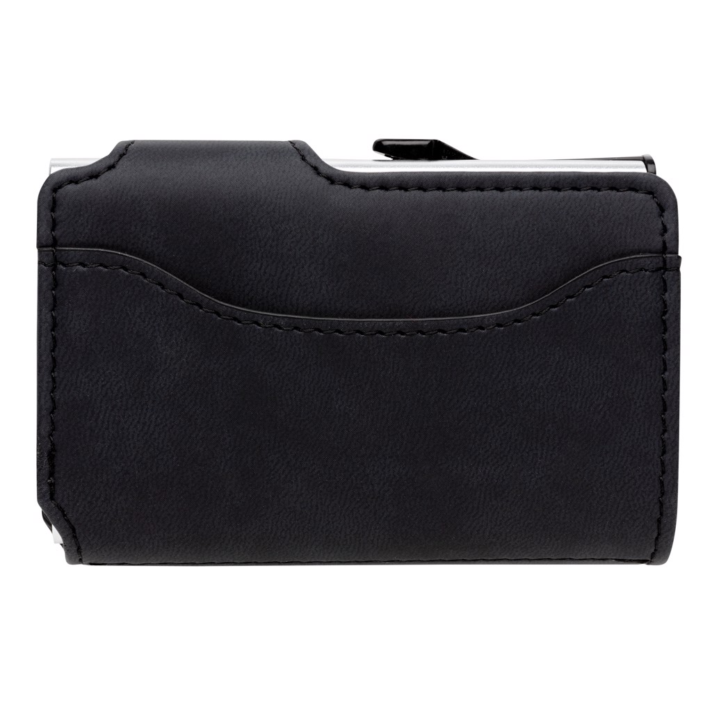 See vastupidav alumiiniumist kaardihoidja koos PU rahakotiga kaitseb teie kõige olulisemaid kaarte elektrooniliste taskuvarguste eest. Unustage katkised või painutatud kaardid! Kaardihoidja mahutab kuni 10 kaarti või 6 reljeefset kaarti, pakkudes mugavat ja turvalist lahendust. Lihtne külgliugur tõukab kaarte järk-järgult üles, võimaldades kiiret ja mugavat ligipääsu. Samuti pakub see NFC (13,56 MHz) blokeerimist, mis tagab teie isikuandmete kaitse. Sobita oma logo sellele praktilisele tootele ja tõsta oma brändi nähtavust!