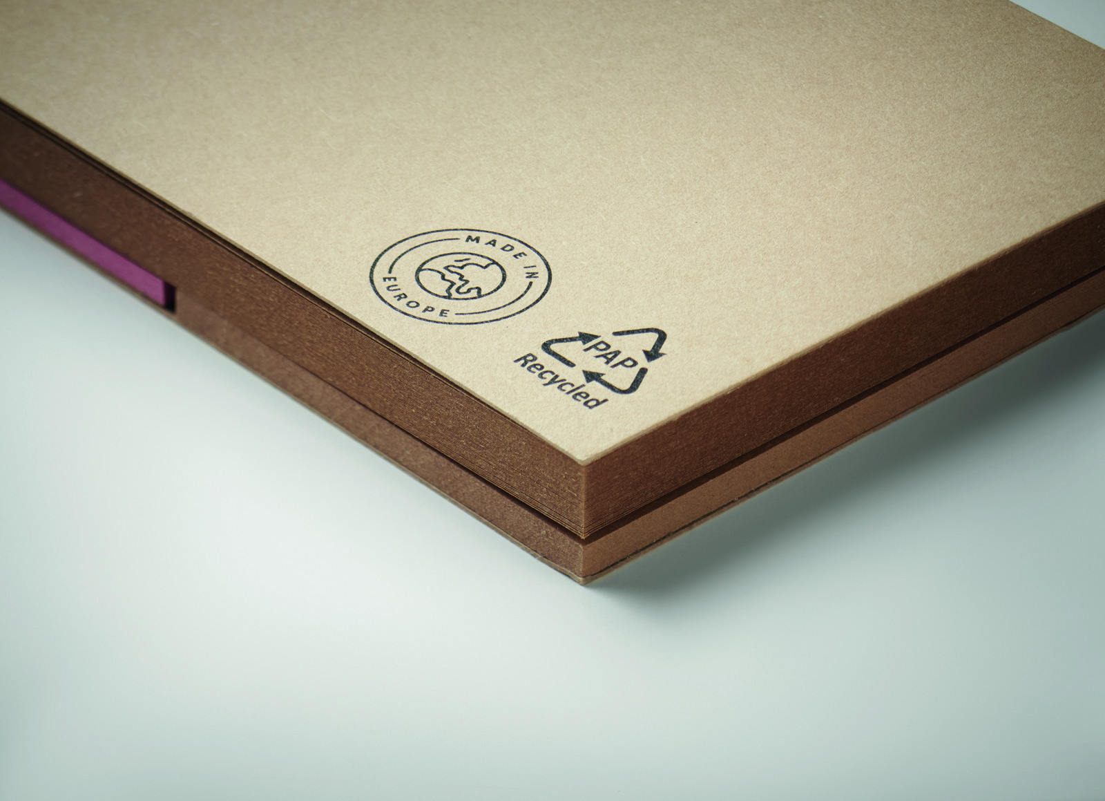 2-osaline kleepuv märkmeplokk, mis sisaldab 50 lehte taaskasutatud paberist kaanega. Komplekt sisaldab kahte märkmeplokki (igaühes 25 lehte) ja kolme erinevat värvi lehemarkerit. Valmistatud Euroopa Liidus, on see toode ideaalne valik, et edastada oma sõnumeid keskkonnasõbralikult. Lisa oma logo ja muuda see praktiline abivahend oma brändi nähtavaks!