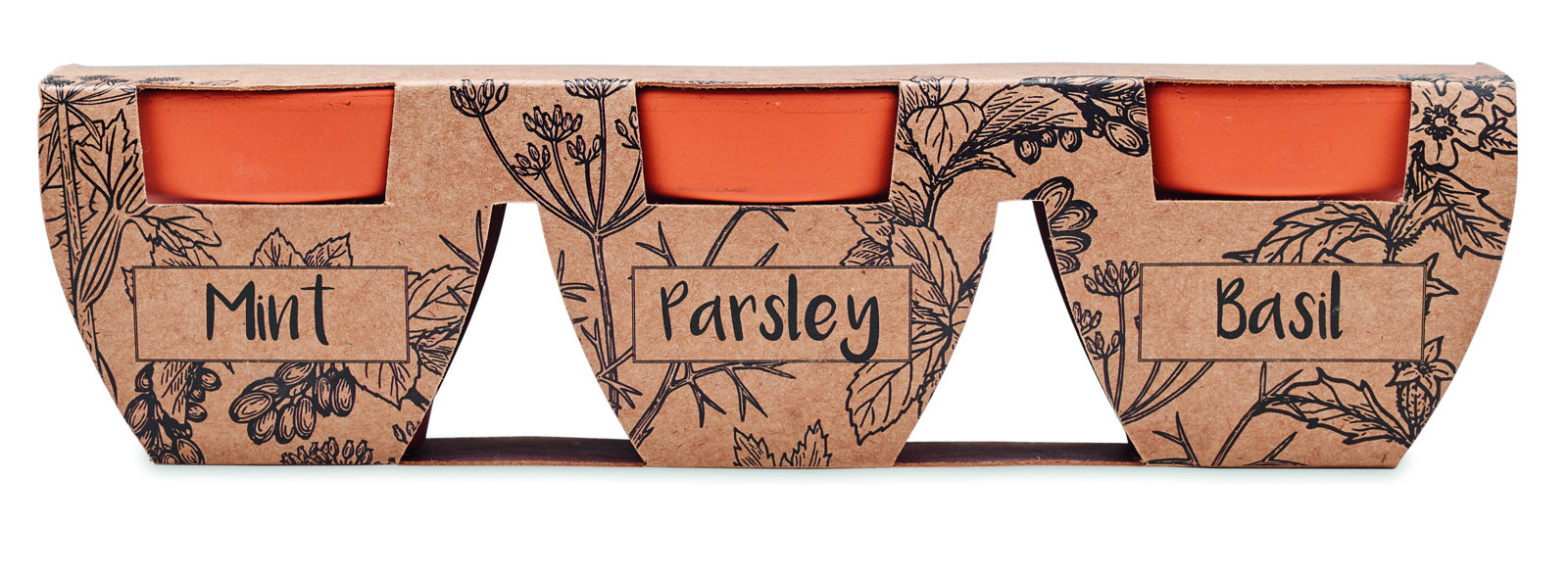 Avasta oma roheline külg Terrakota ürdipoti komplektiga, mis sisaldab kolme kvaliteetset savist lillepotti. Igas potis on erinevad ürdiseemned: piparmünt, petersell ja basiilik, mis võimaldavad sul kasvatada maitsvaid ja värskeid ürte otse kodus. Tooted on valmistatud Euroopa Liidus, tagades kõrgema kvaliteedi ja keskkonnasõbralikkuse. Lisa oma logo potidele ja too oma bränd esile!
