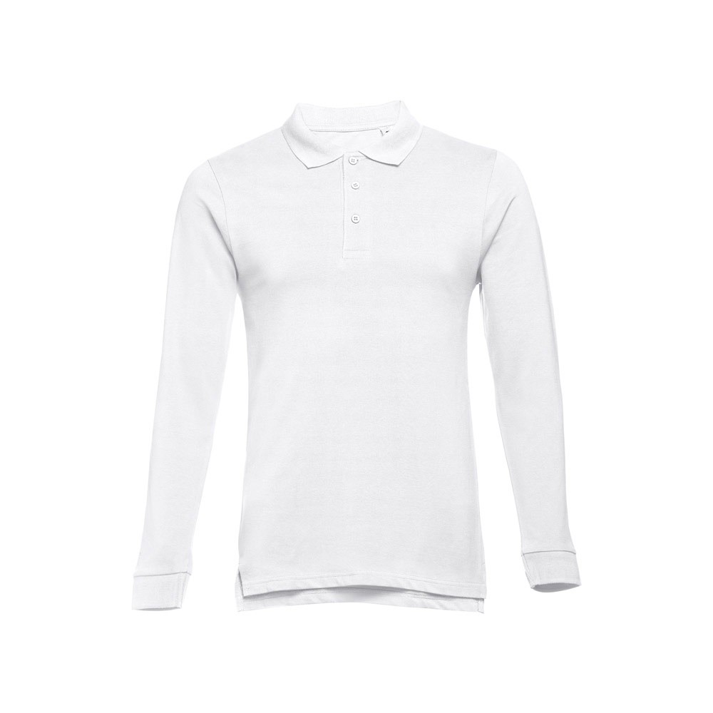 Long-sleeved polo for men in piqué 100% carded cotton (210 g/m²). Regular cut polo with rib collar and cuffs. The collar is reinforced with piqué knit ribbon. Features a reinforced collar with 3 matching colour buttons (extra button inserted in the inner seam). Piece cut and sewn with side vents at the hem. Removable visible label. Size: 3XL
