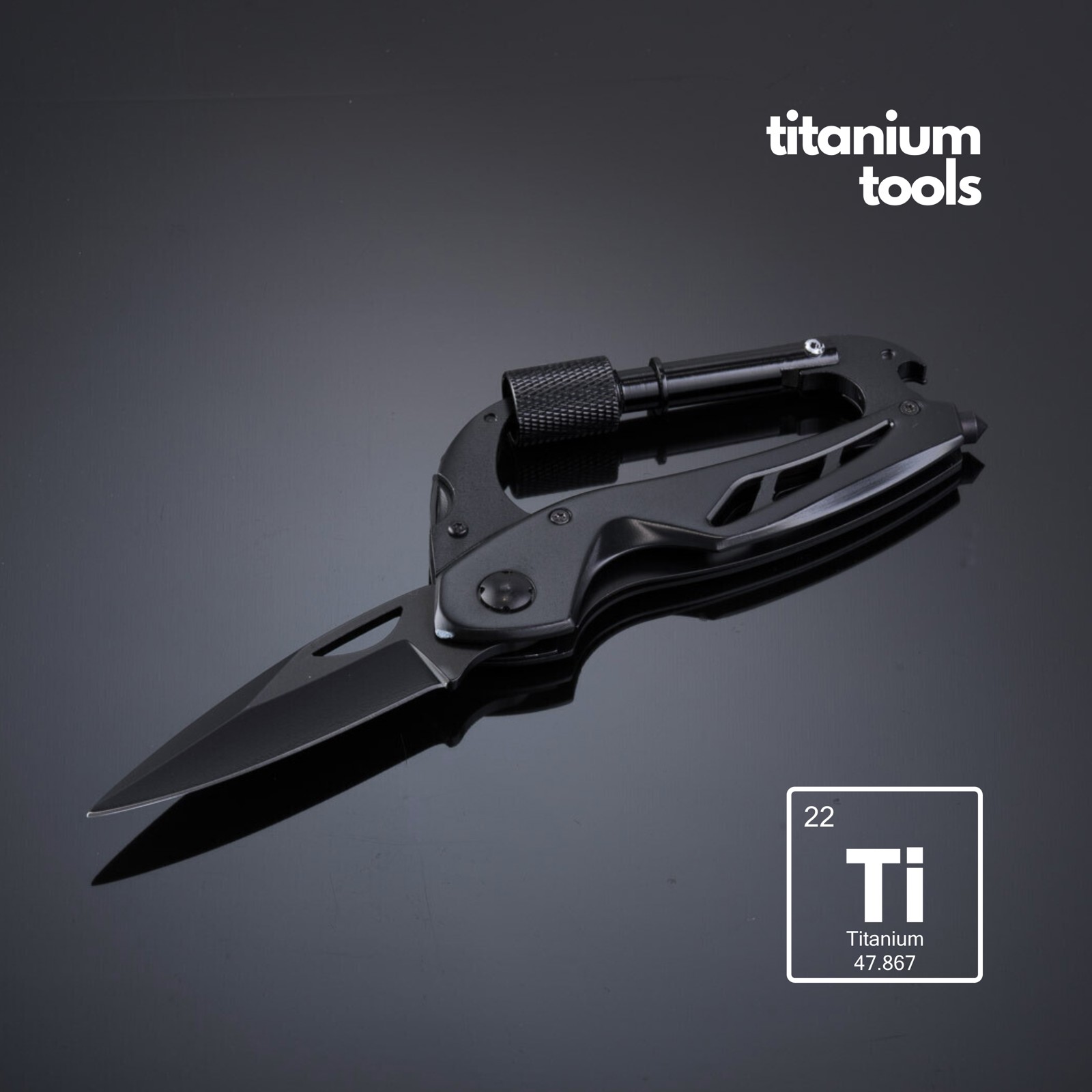 Titaankattega terasest multifunktsionaalne tööriist Optima karabiiniga