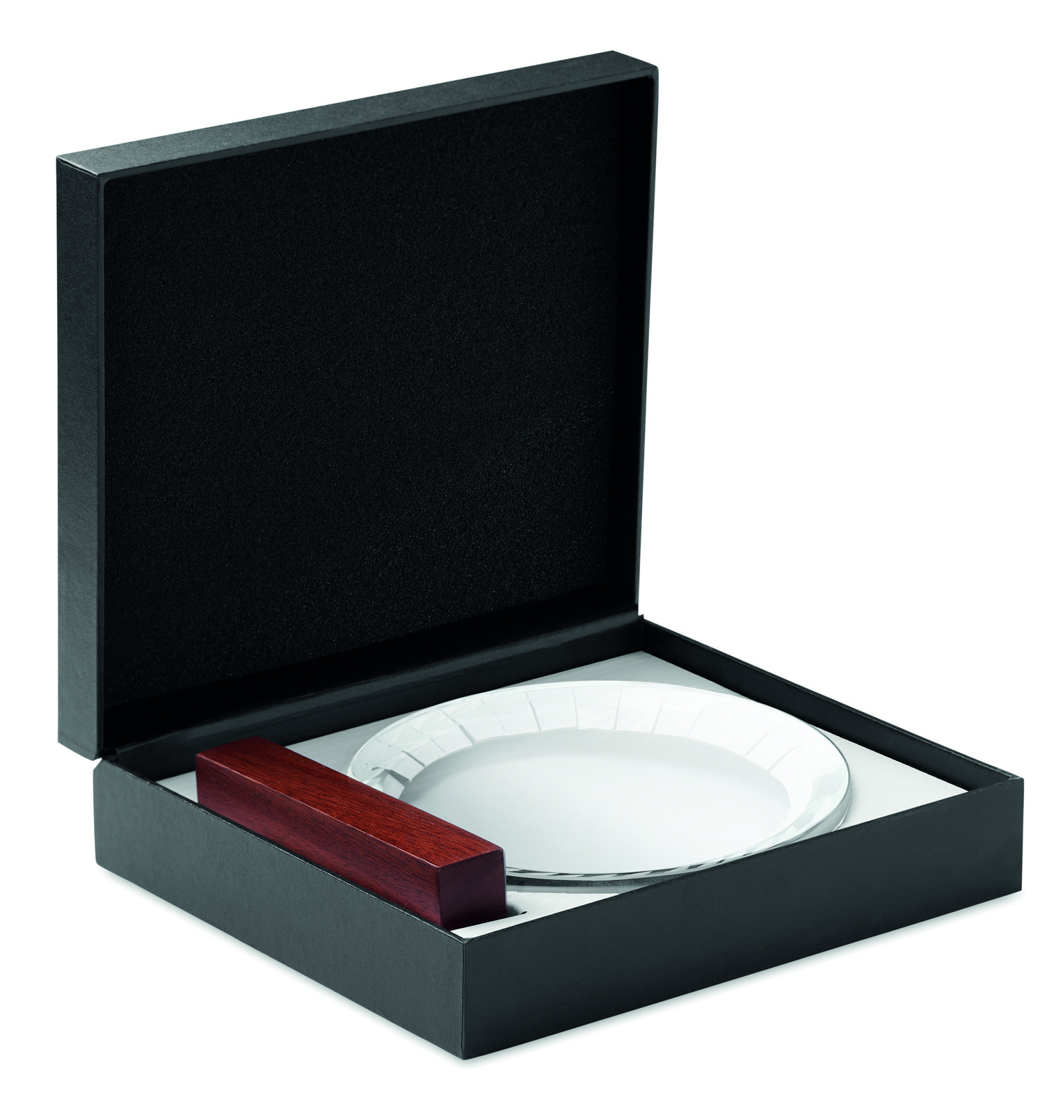 Ümmargune kristallauhind või mälestustahvel, mis on paigutatud elegantsele pöögipuidust alusele. See kaunis kingitus on ideaalne võimalus tunnustada saavutusi või jäädvustada erilisi hetki. Auhinnatahvel on pakendatud stiilsesse kinkekarbisse, muutes selle suurepäraseks valikuks nii ettevõtete kui ka eraisikute jaoks. Lisa oma logo ja muuda see ainulaadseks mälestuseks!
