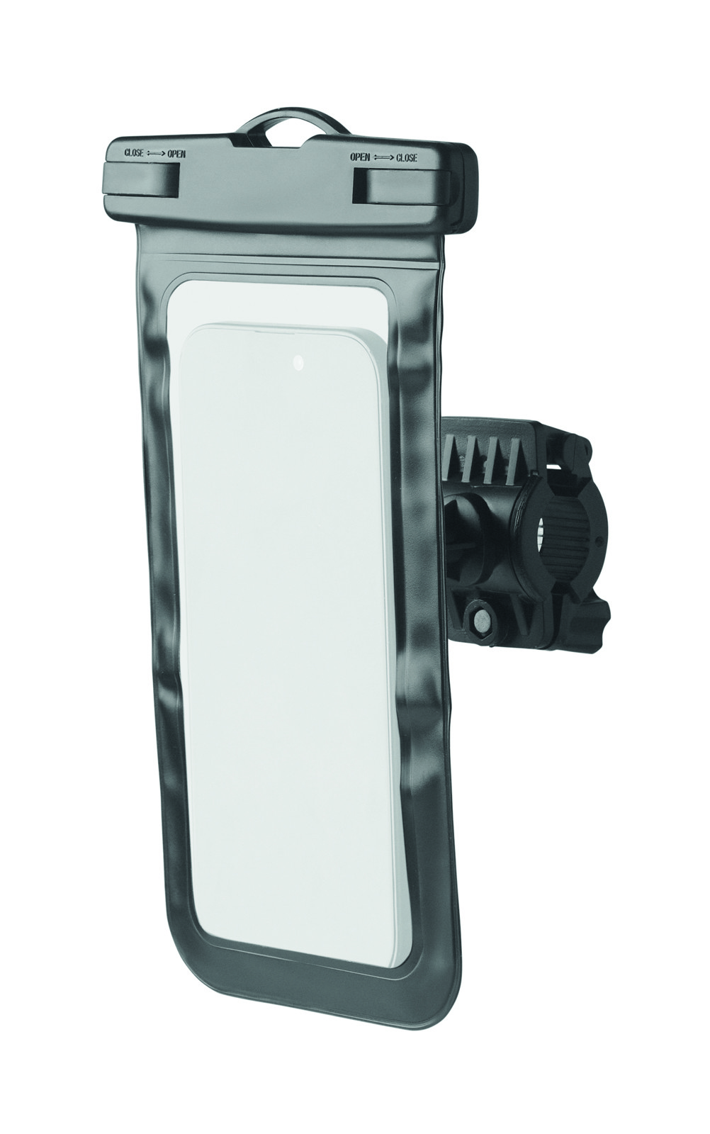 Sosteneris on veekindel PVC-st valmistatud mobiiltelefoni kinnituskohver jalgrattale, mis pöörleb 360 kraadi. Tänu IPX 6 veekindlusele on sinu telefon kaitstud ka kõige raskemates ilmastikuoludes. Sobib suurepäraselt kuni 6,7-tollise ekraaniga telefonide