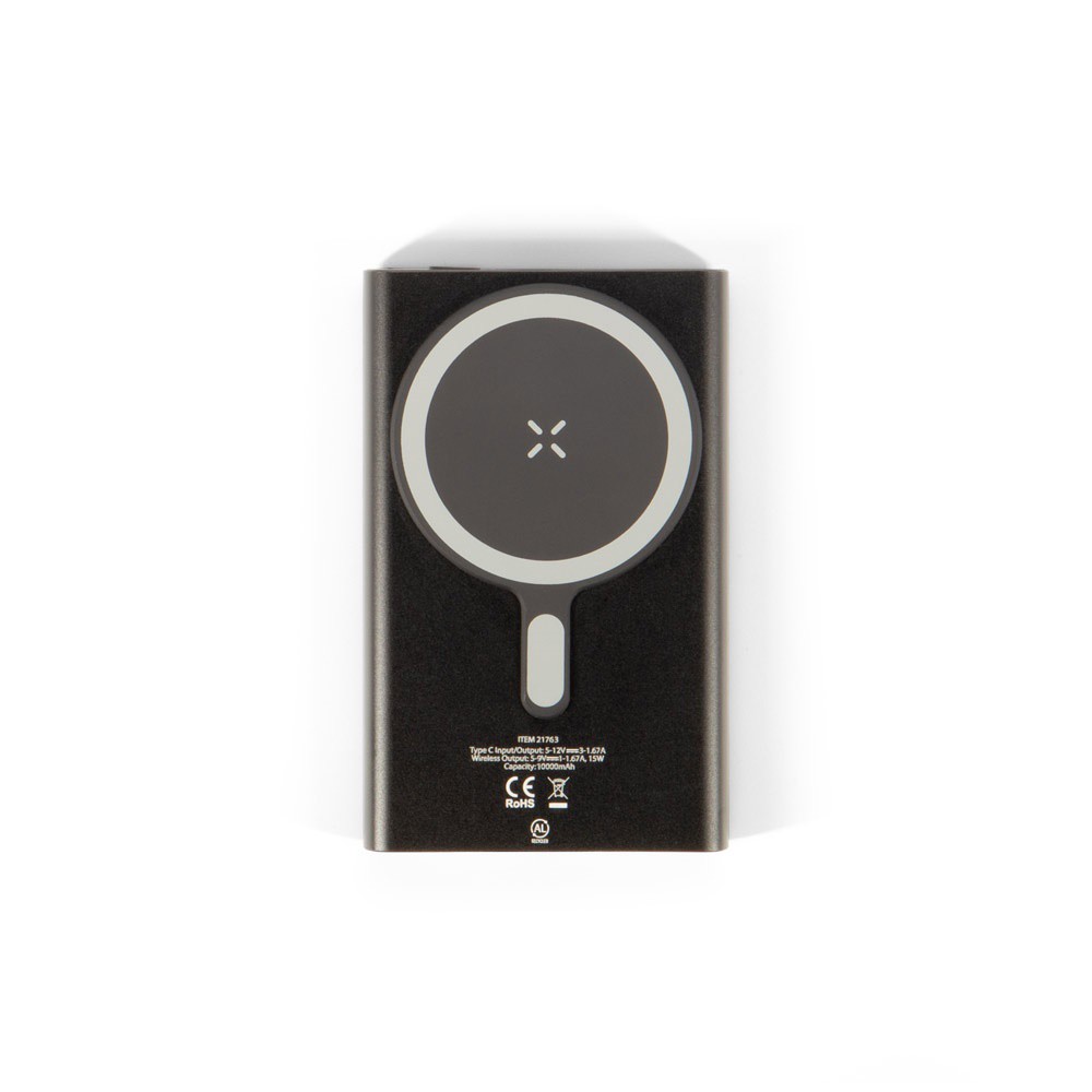 Magnetic power bank with super-fast charging and 4 LEDs that indicate battery level. The wireless charging location has a raised magnetic area to adapt to most smartphones. As the product is made from natural materials, the colour and the printing result may vary between products.Material: ABS (7% recycled), aluminum (21% recycled)Capacity: 10.000 mAhWireless charging power: 15WInput: USB-C (18W)Output: USB-C (PD 20W)Includes: Extra magnetic grip, USB-C/USB-C cable with USB-A adapterFeatures: Allows you to charge 2 devices simultaneouslyCompatibility: iPhone 12 and above, devices with magnetic technology (e.g., Magsafe or with magnetic grip)Packaging: Gift box made from recycled kraft paper 106 x 67 x 19 mm